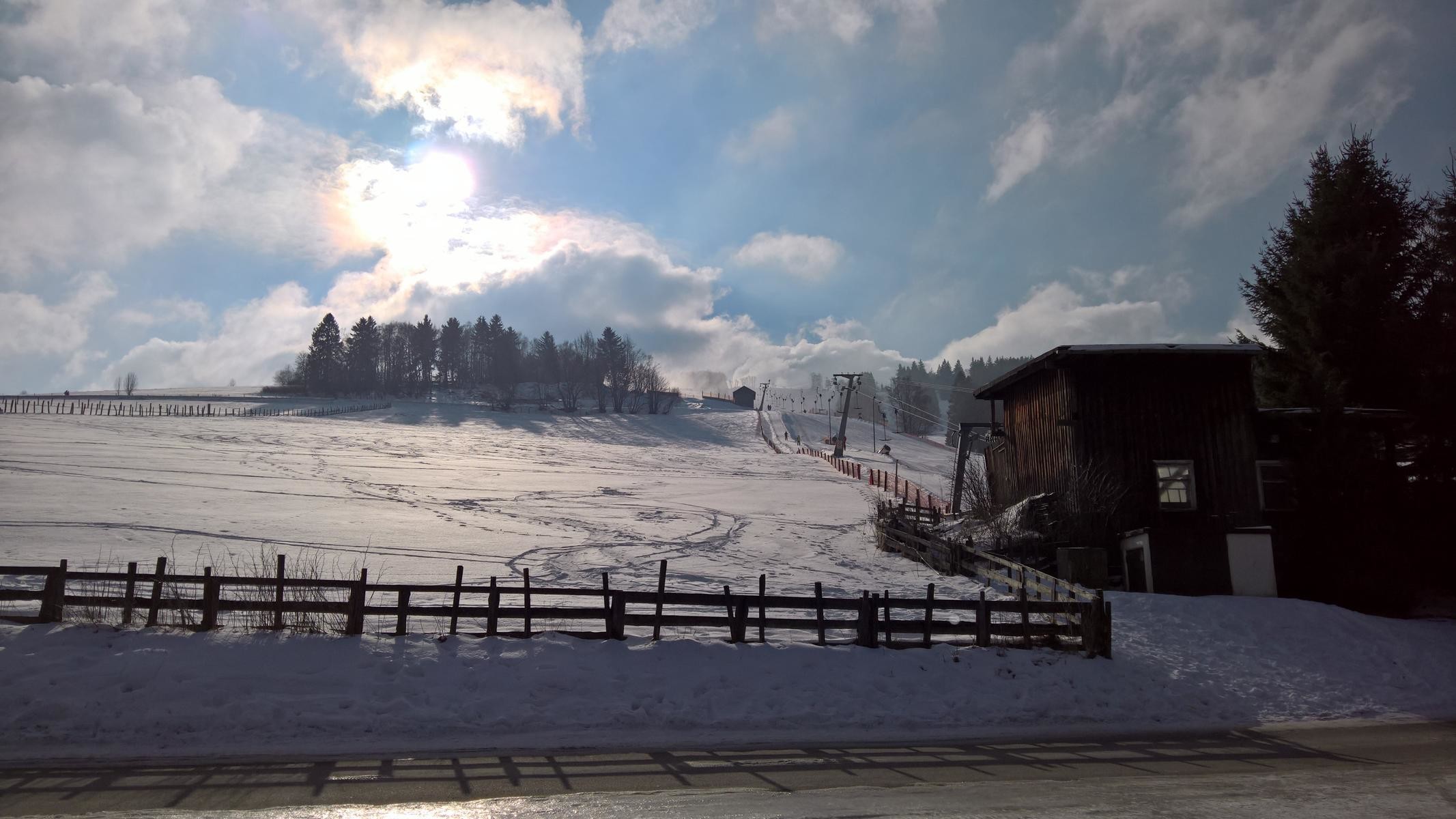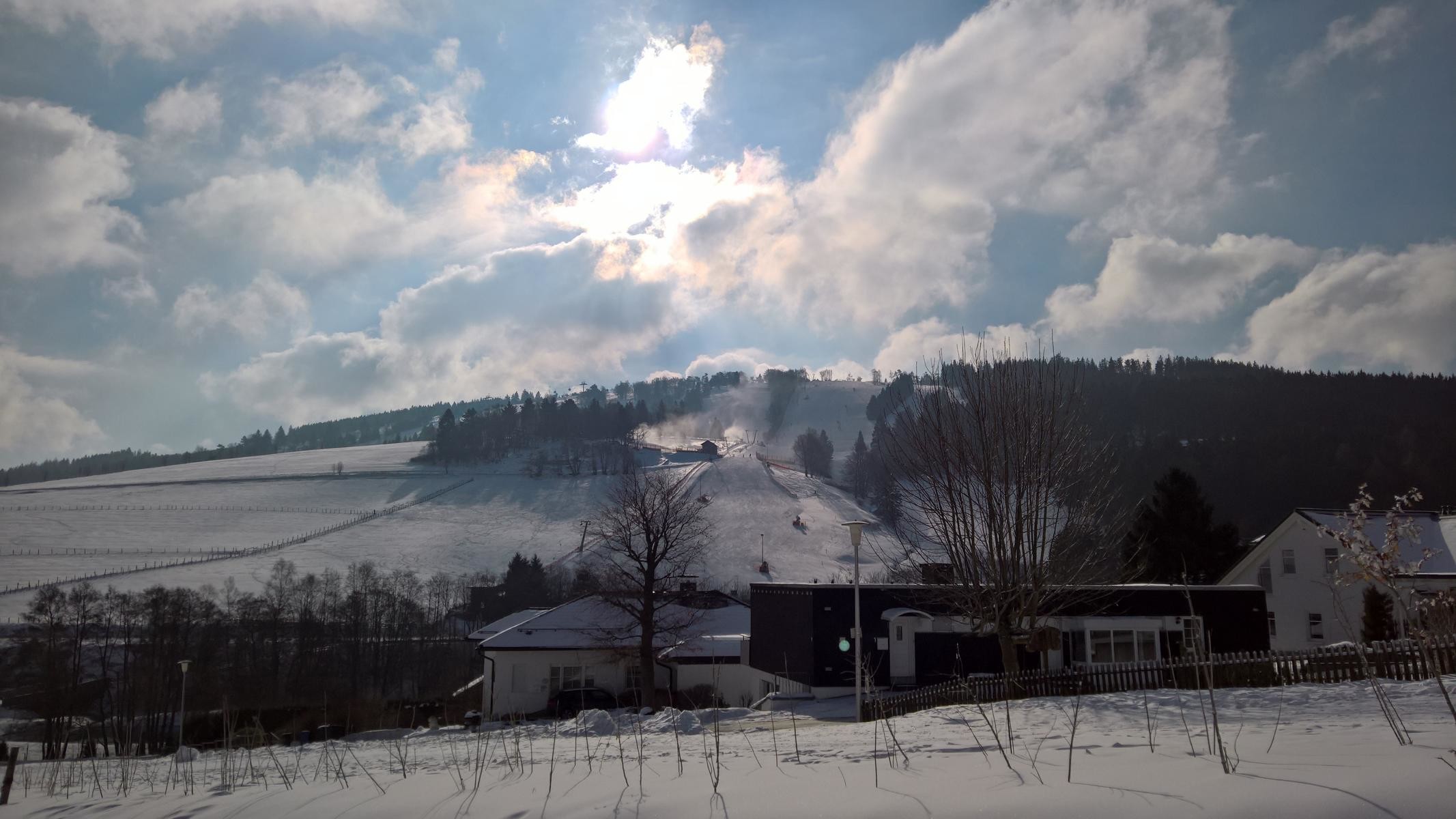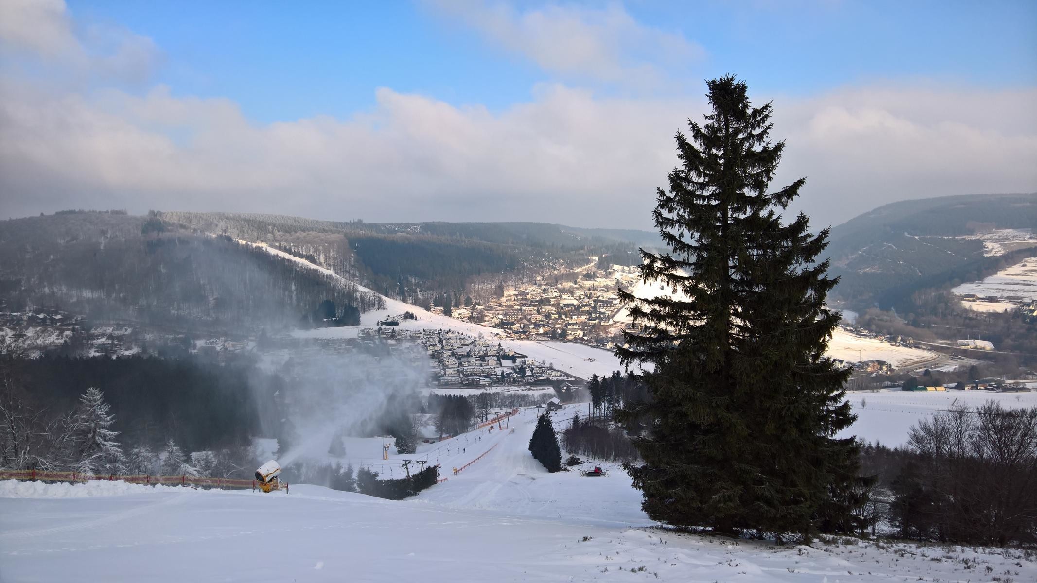 Die Piste rechts am Waldhotel ist zwar offiziell nicht beschneit, aber gerade bei den derzeitigen Ostwinden weht es auch einiges an Schnee dort rüber.