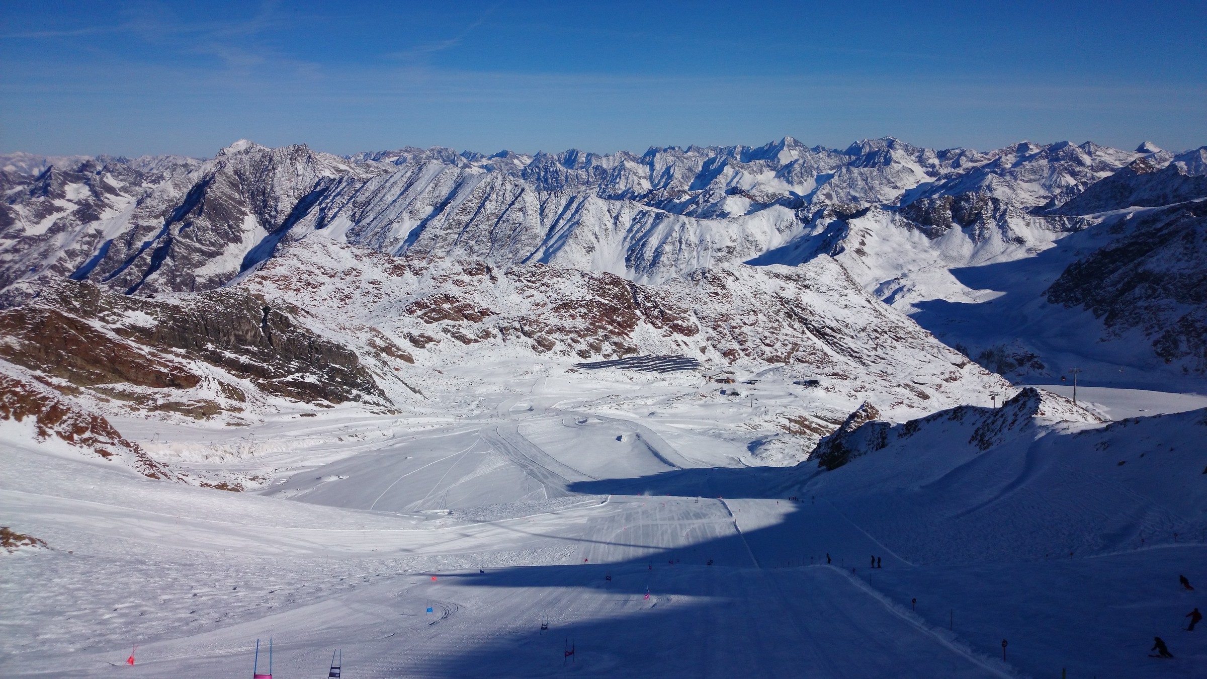 Nachmittags konnte man auch den Aussenrum Bereich der Wildspitz Pisten einfahren, an welchem vormitags die deutsche Europa Cup Mannschaft SuperG Training absolviert hat... ( perfekt präparierte Pisten...