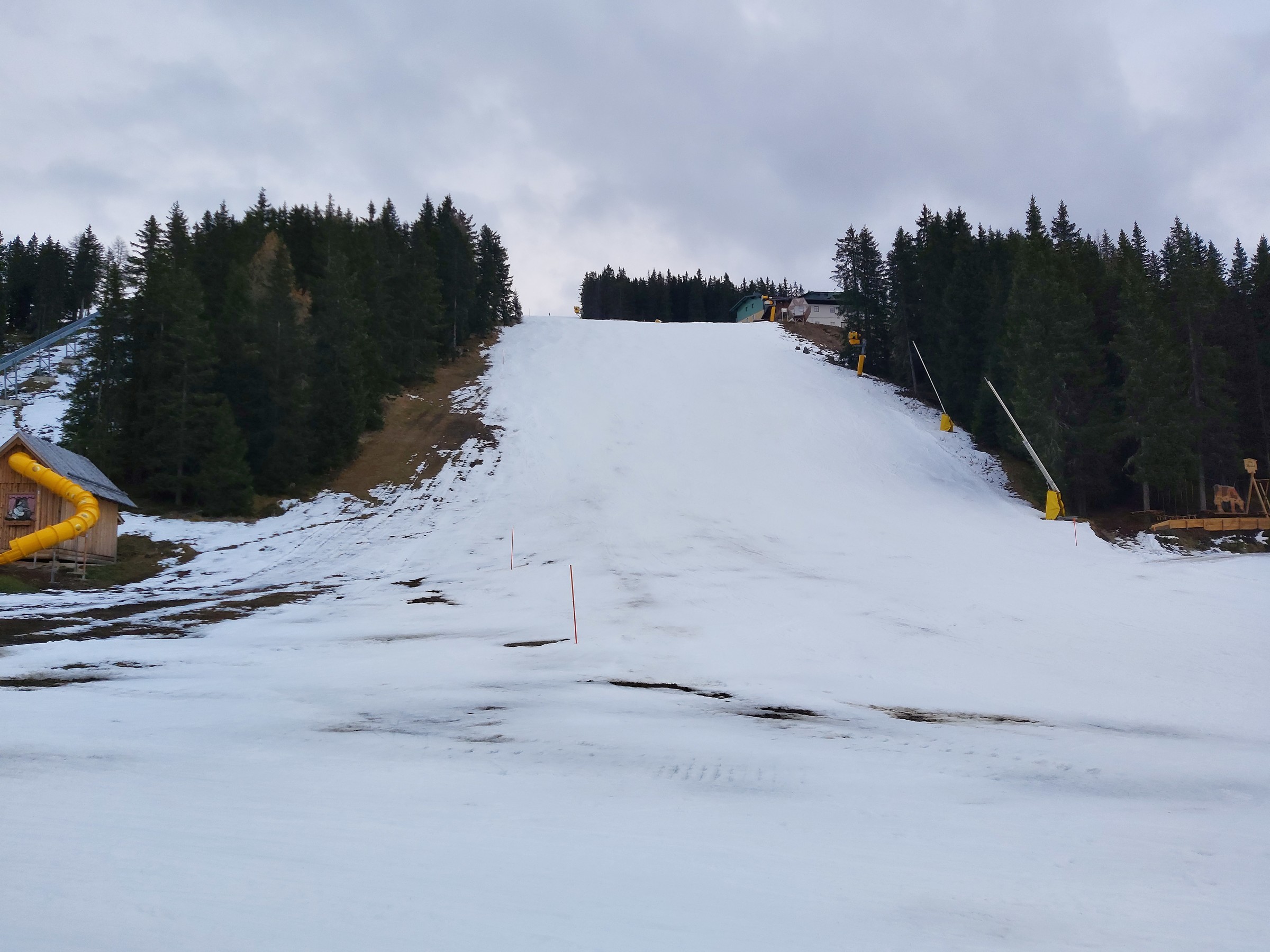 Am Grafenwiesenlift fand man auch noch etwas. Der Schnee aber wesentlich feuchter.
