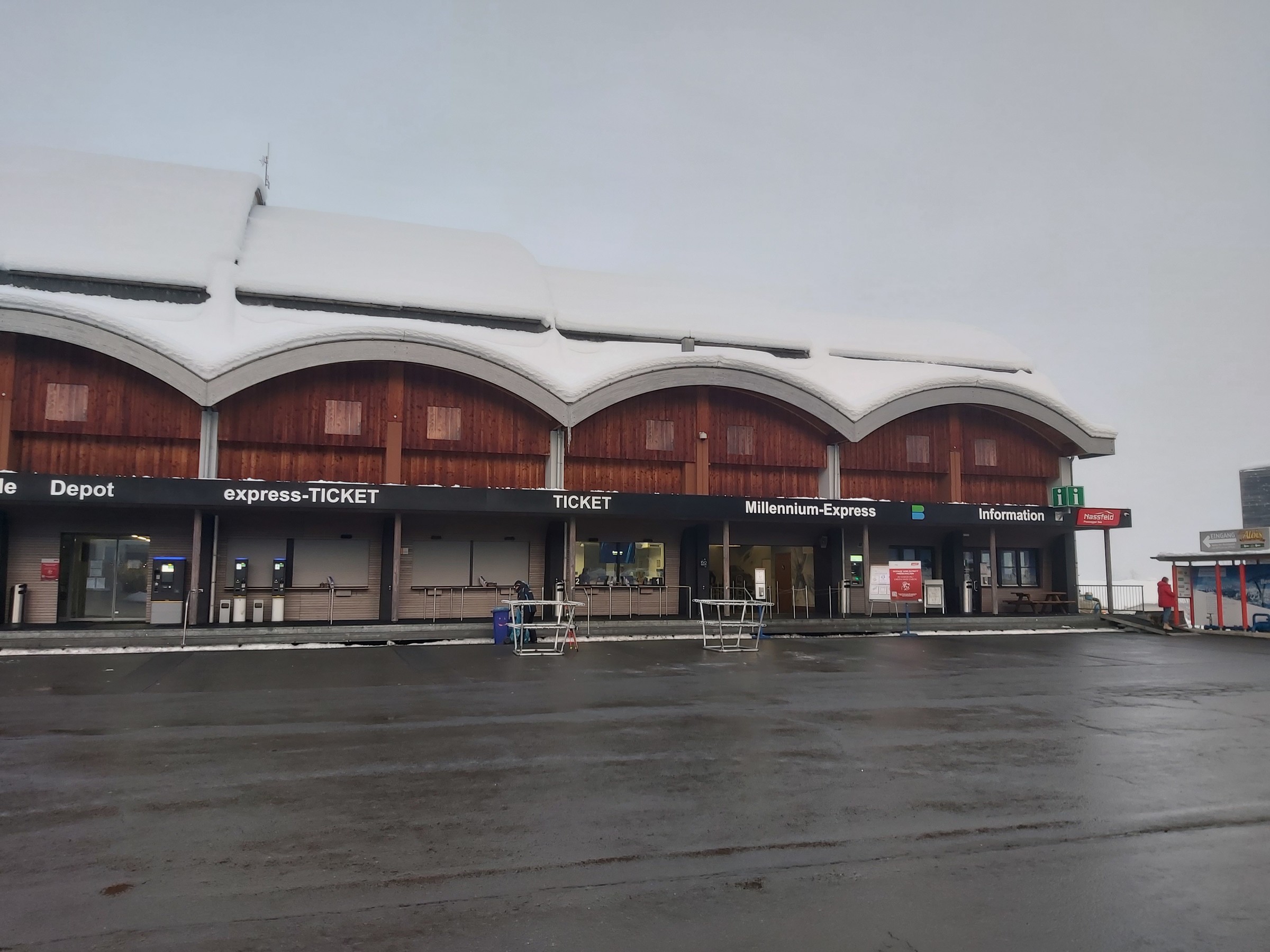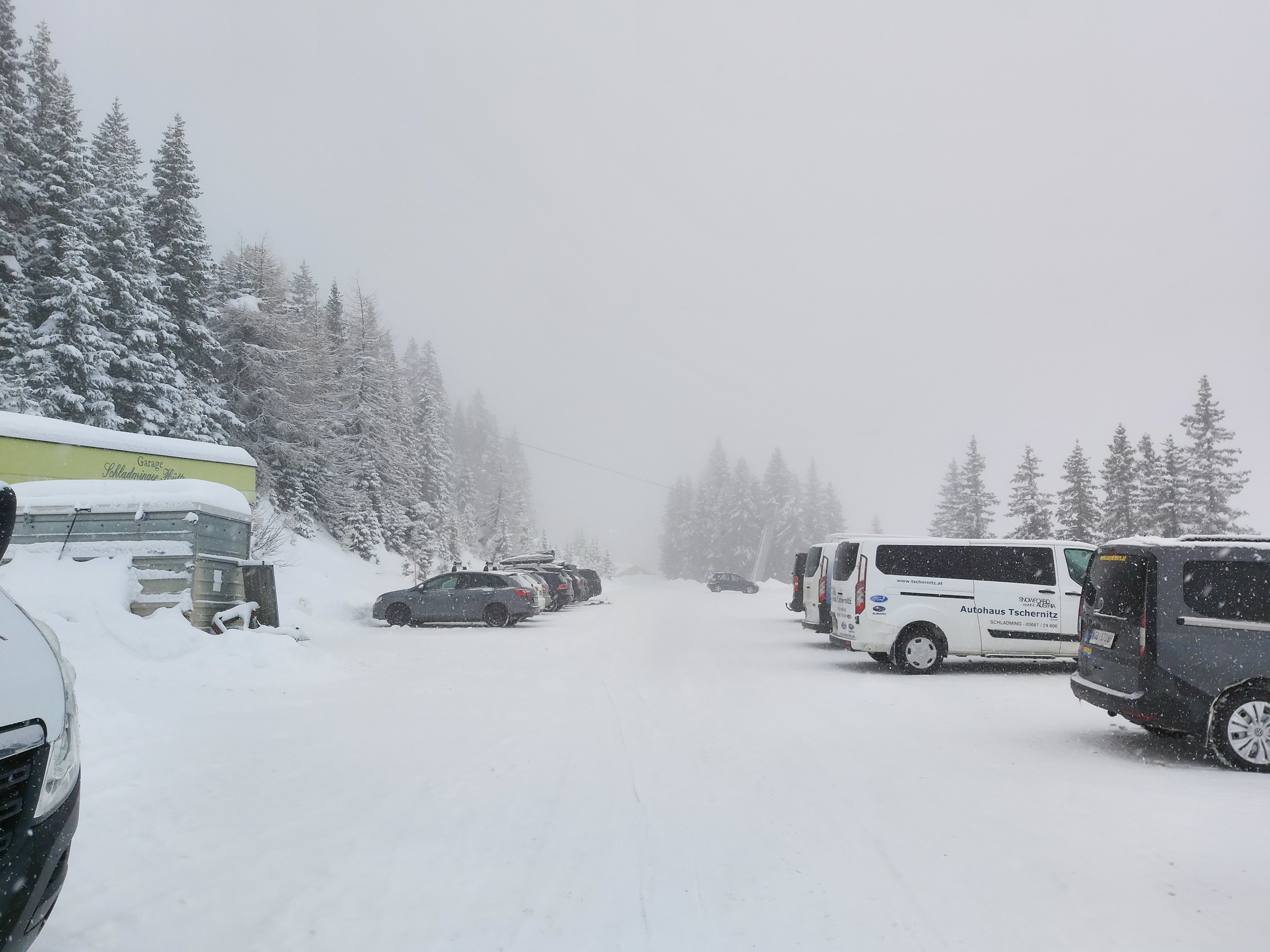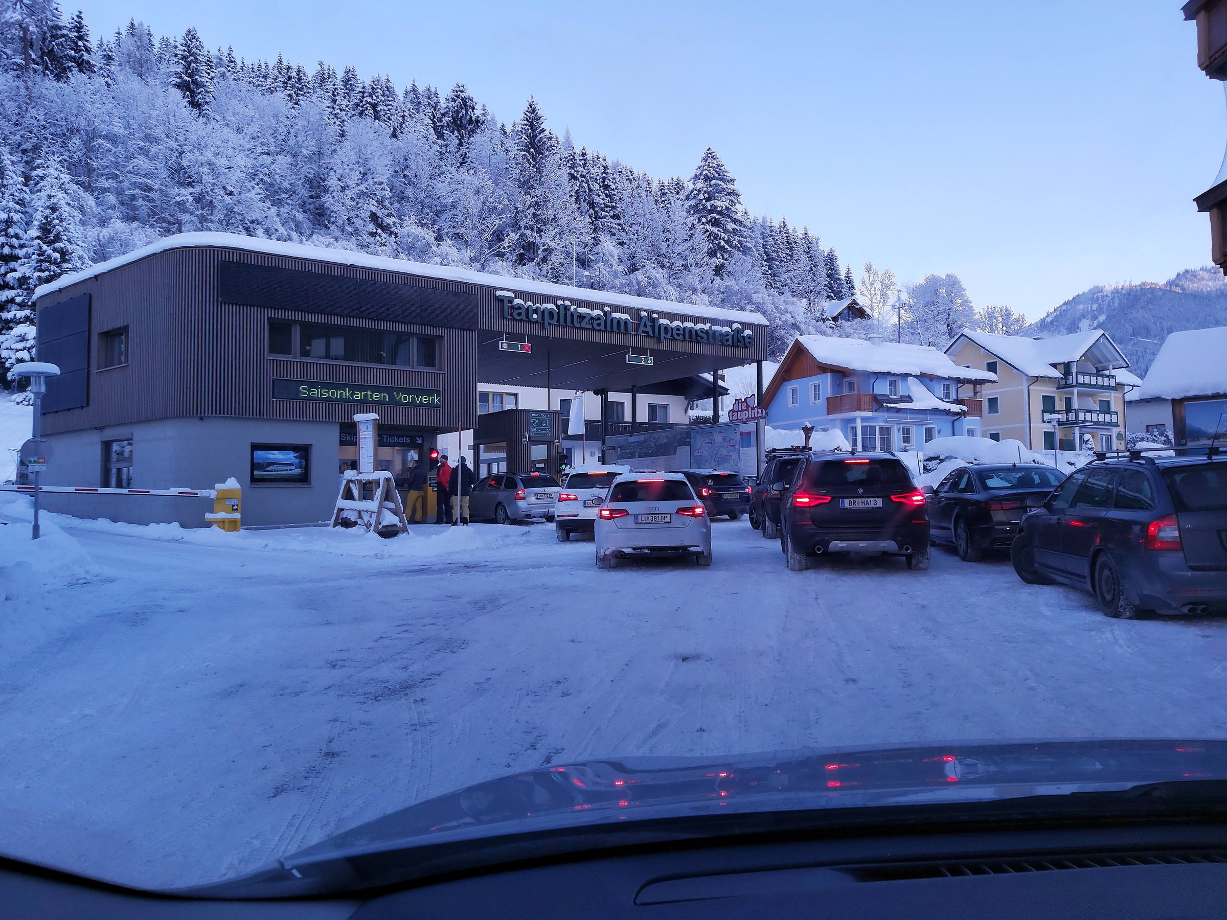 Momentan muss man noch die Mautstraße hoch, was sich aber ab Morgen oder Samstag ändert. (Schneekettenpflicht) ((hust))