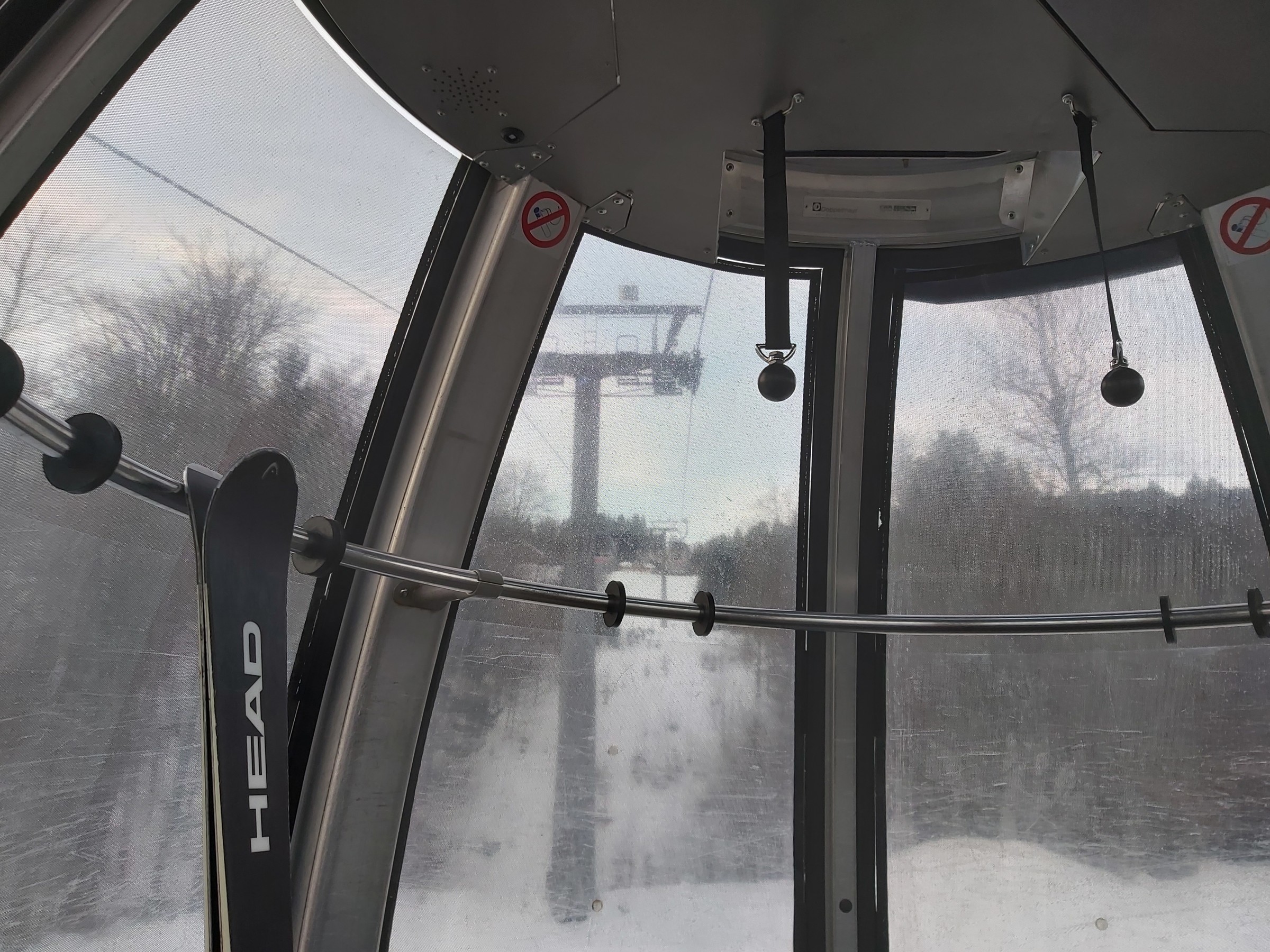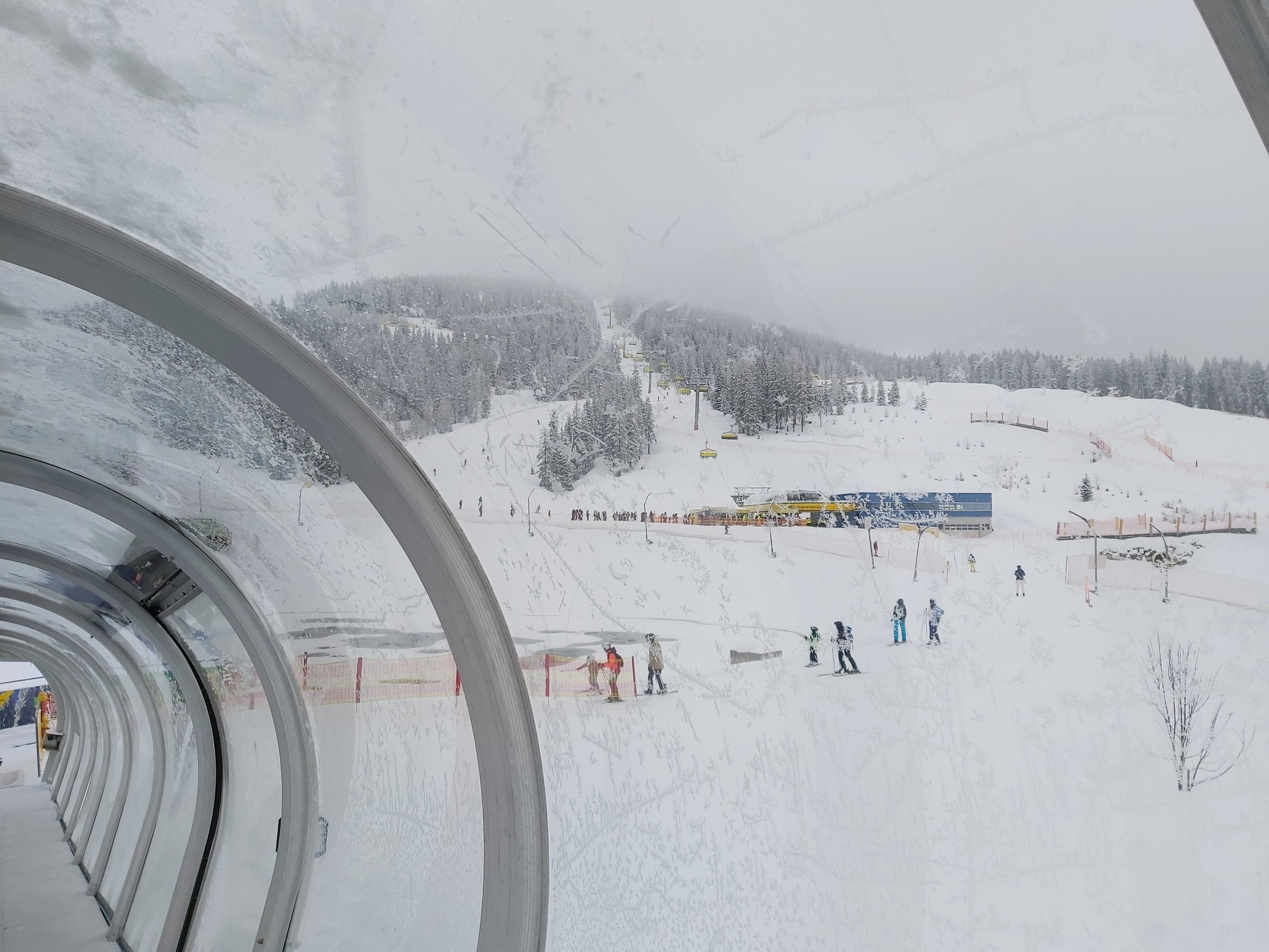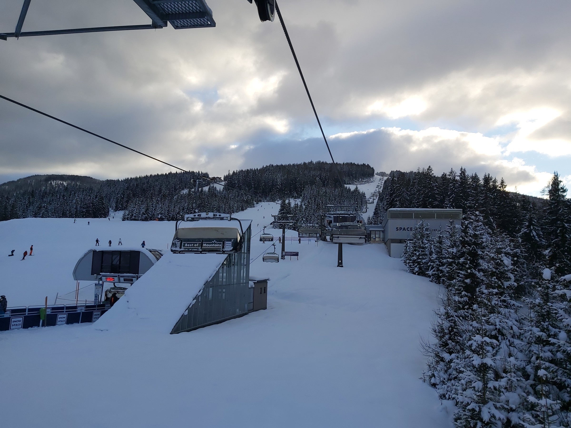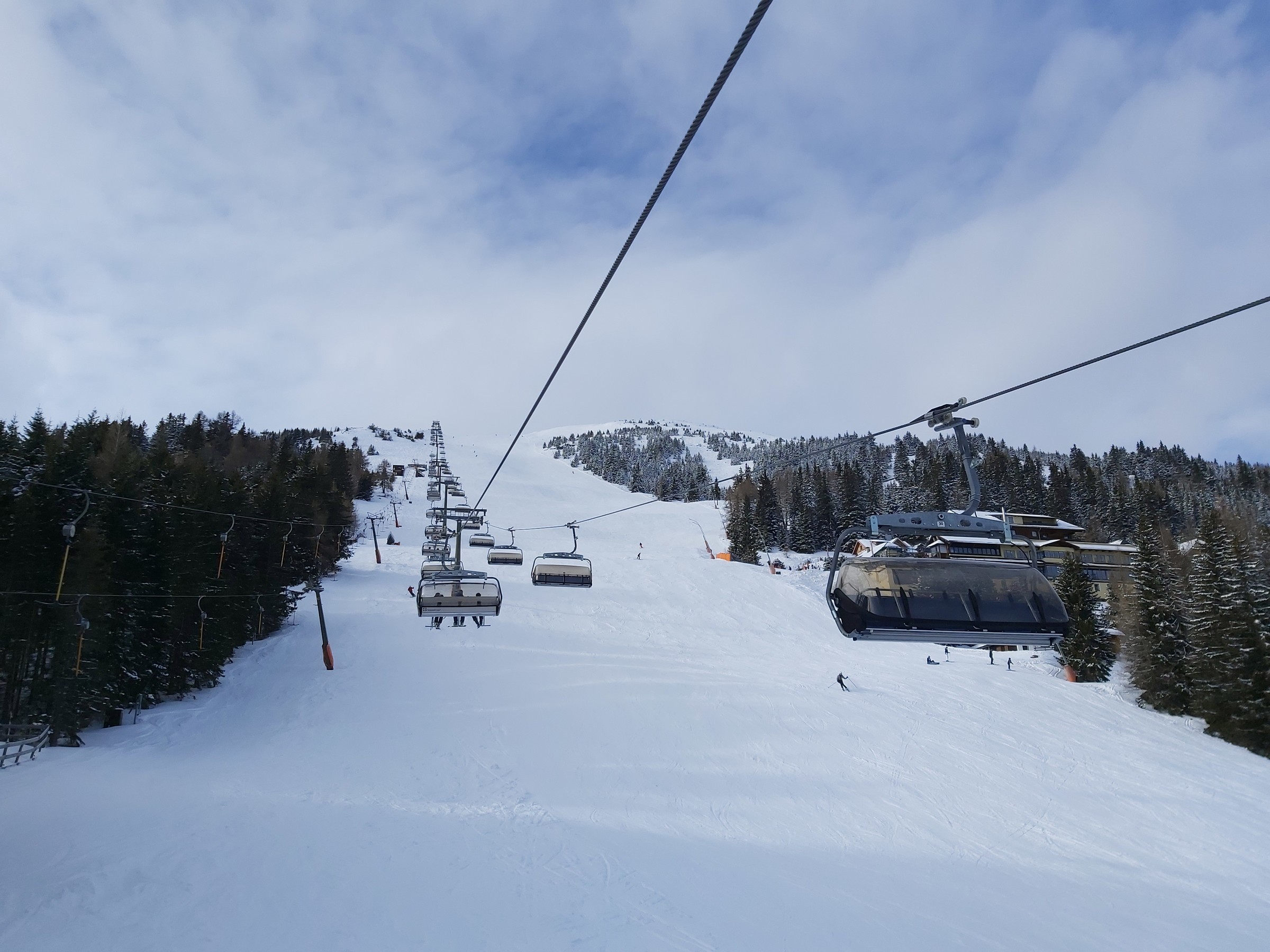 Durch einem Defekt am Lärchkogellift geht es doch noch an der Lawinensteinbahn nach oben. So wie der Bubble sieht die Skibrille auch aus. Man sieht fast nix...