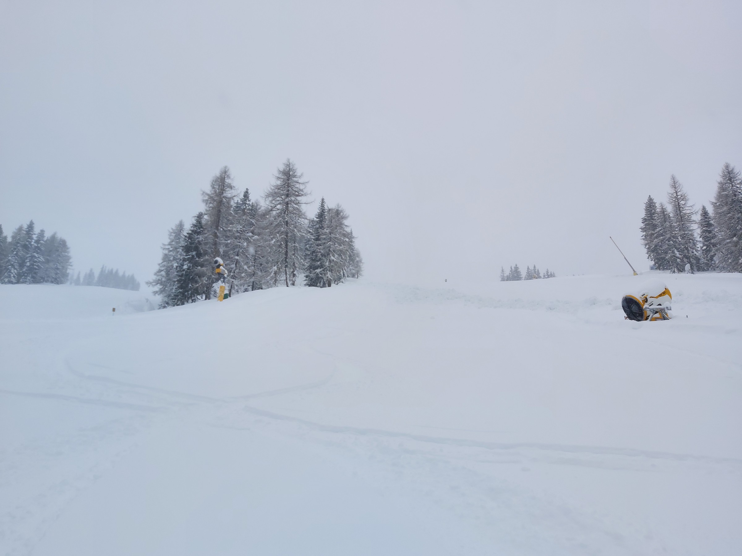 Die 7b ist jetzt offiziell Geöffnet und gegen 12:00 Uhr sind nur eine handvoll Spuren mit etwas Neuschnee dazu gekommen.