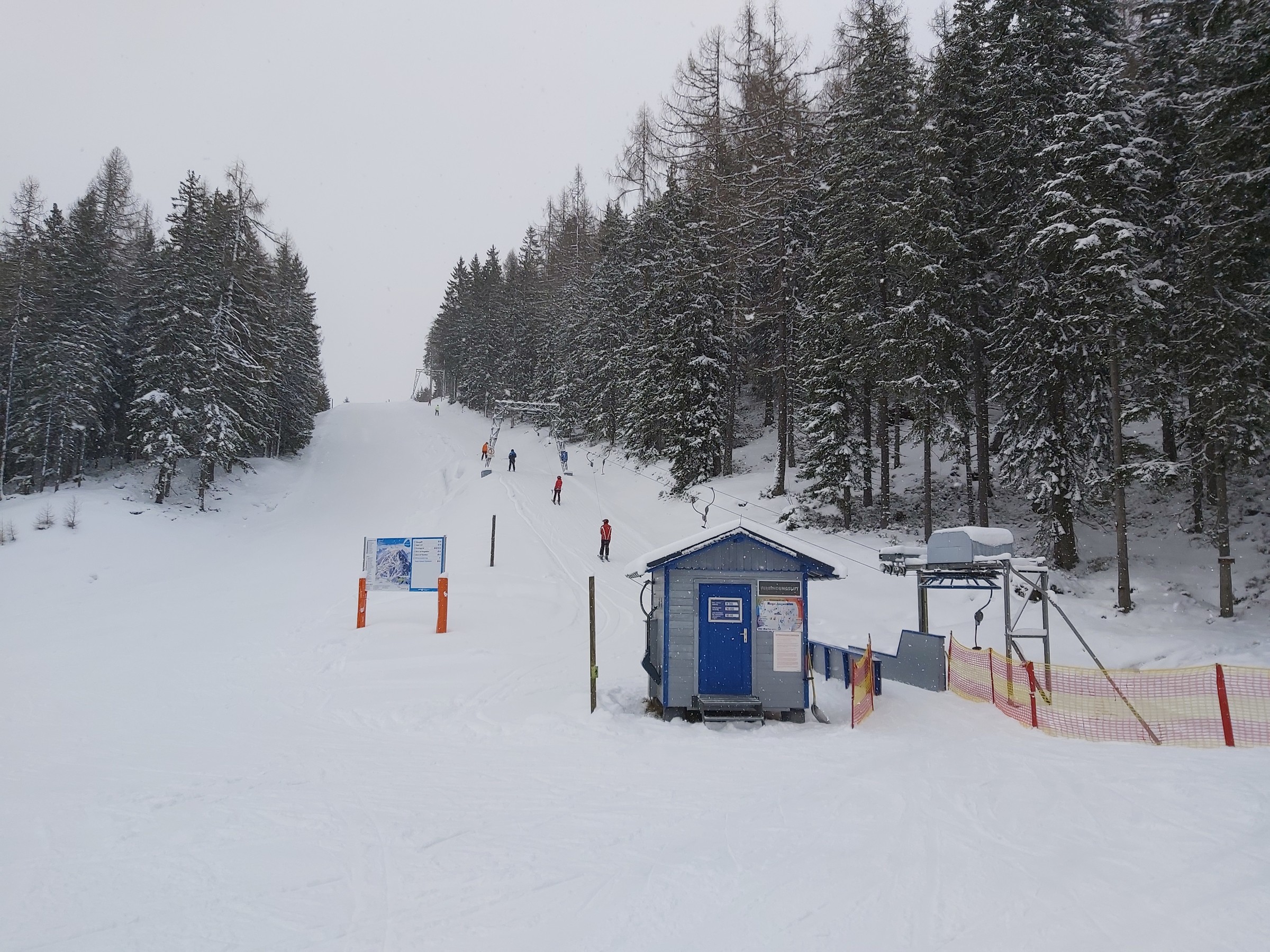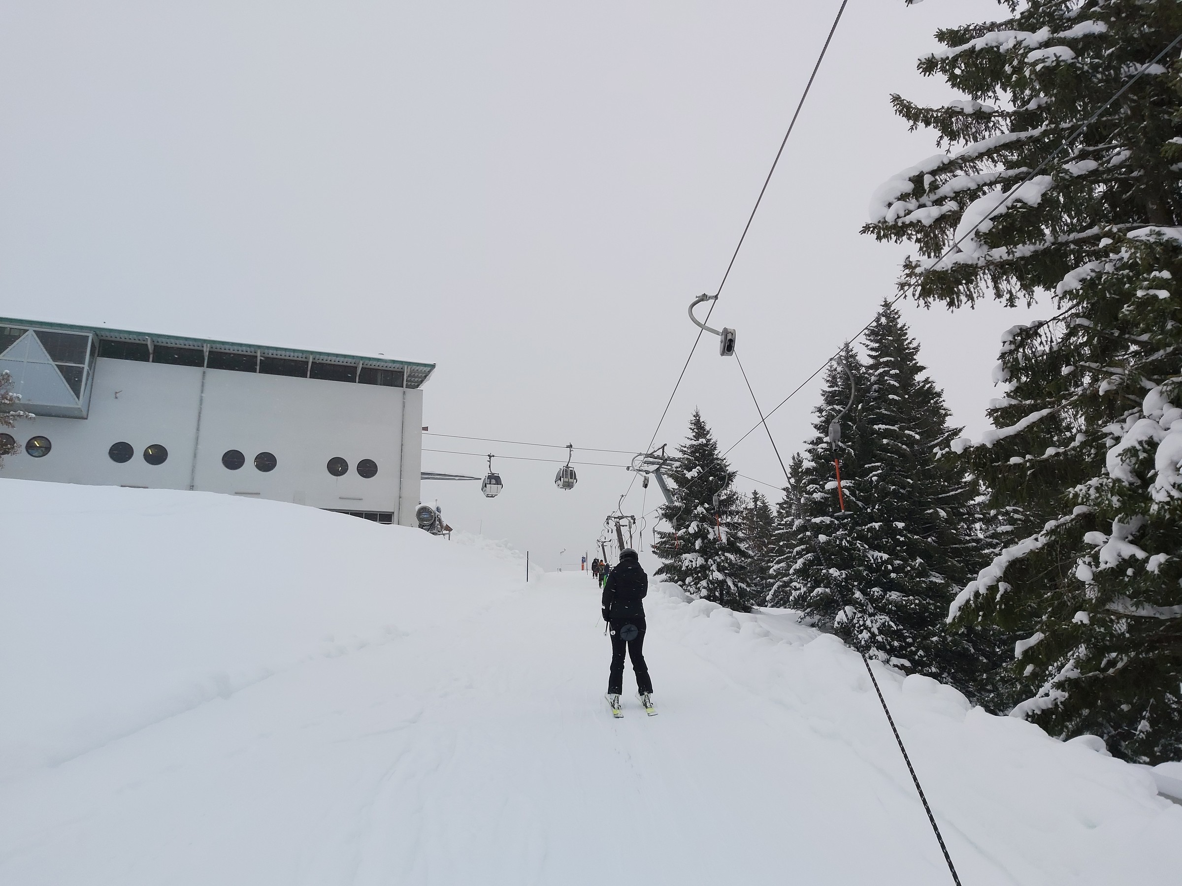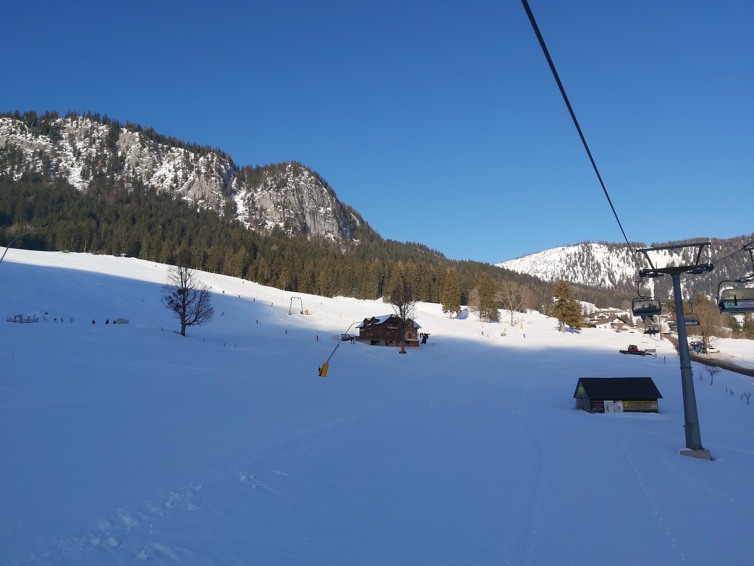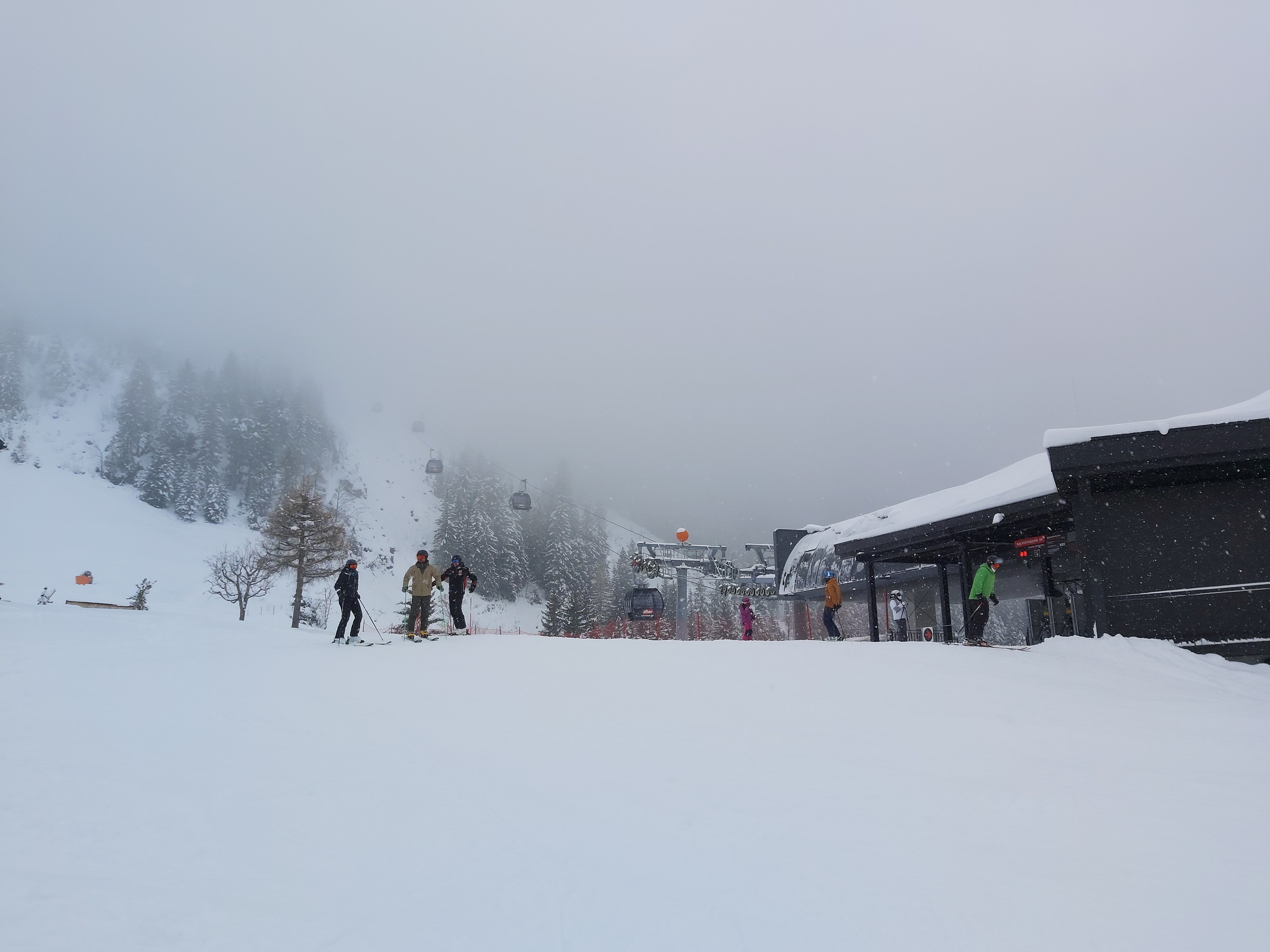 Am gestrigen Tag war es gar sehr windig und auch sonst nicht der Brüller. Heute wurde noch Schnee geschaufelt bei nun 50 cm im Tal. Doch jetzt ist es nicht zu windig und die Sicht relativ gut. Also Skisachen an und los gehts.
