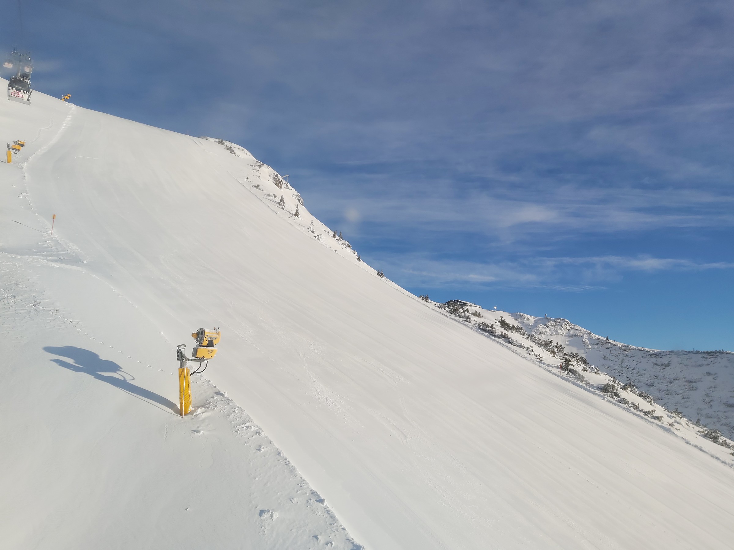 Die Pisten wurden so weit als Möglich an der Lärchkogelbahn schon angeschoben.