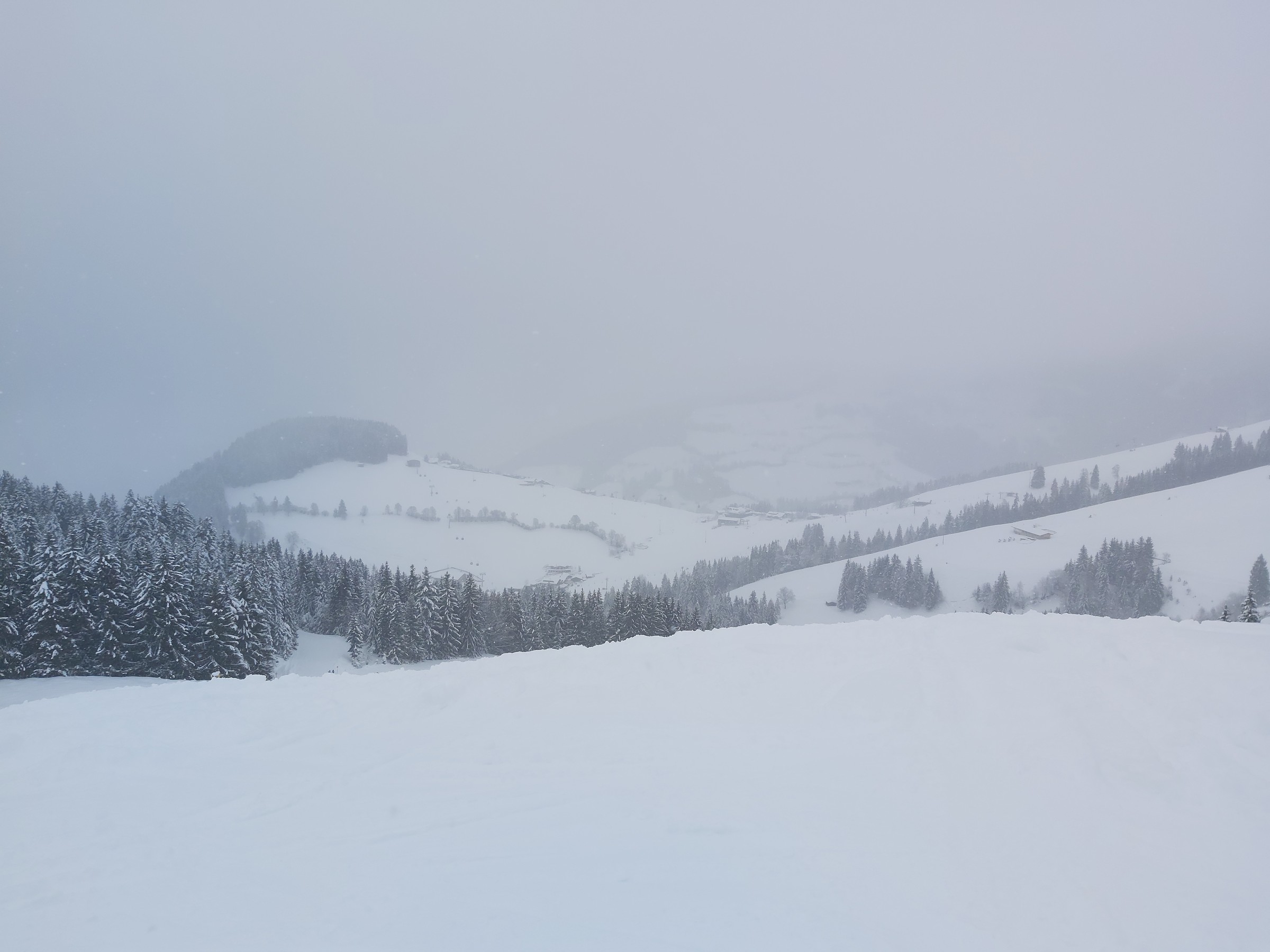 Lawinensteinpiste mitte mit ordentlicher Nebel.