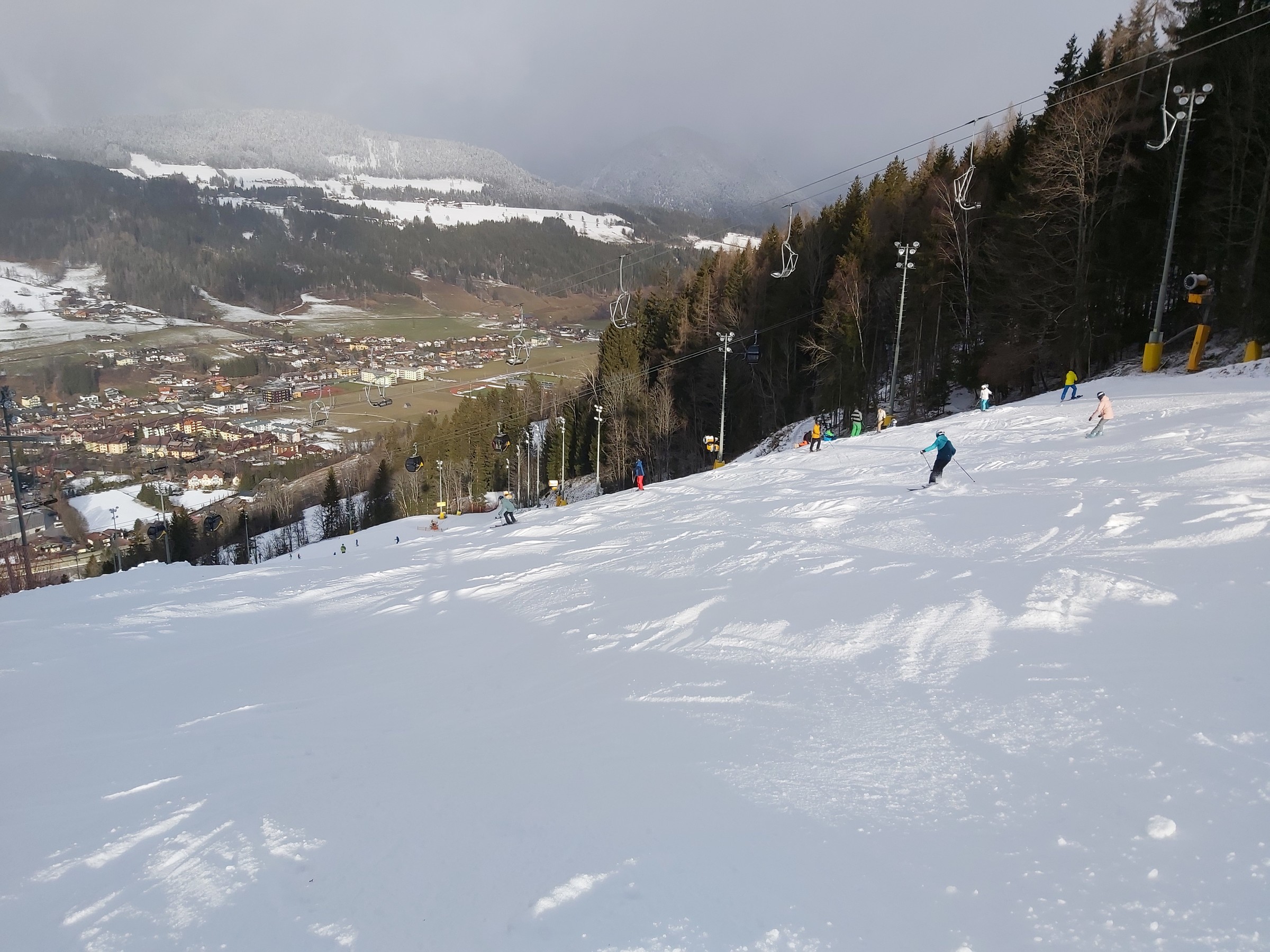 Die Auflage ist Dünn und die Piste schon etwas weich und etwas hügelig. Dennoch machten die knapp zwei stunden Spaß. Die ersten Carvingschwünge an der Inoffiziellen sind nach Kitzbühel und Dachstein auch abgehakt. Der etwas Regen war etwas lässtig und zum Schluss mit der Winde so früh sehe ich auch als nicht optimal. Dennoch komme ich wieder wenn Zeit ist und bevorzuge das bisschen hier sogar mehr als den Dachstein.