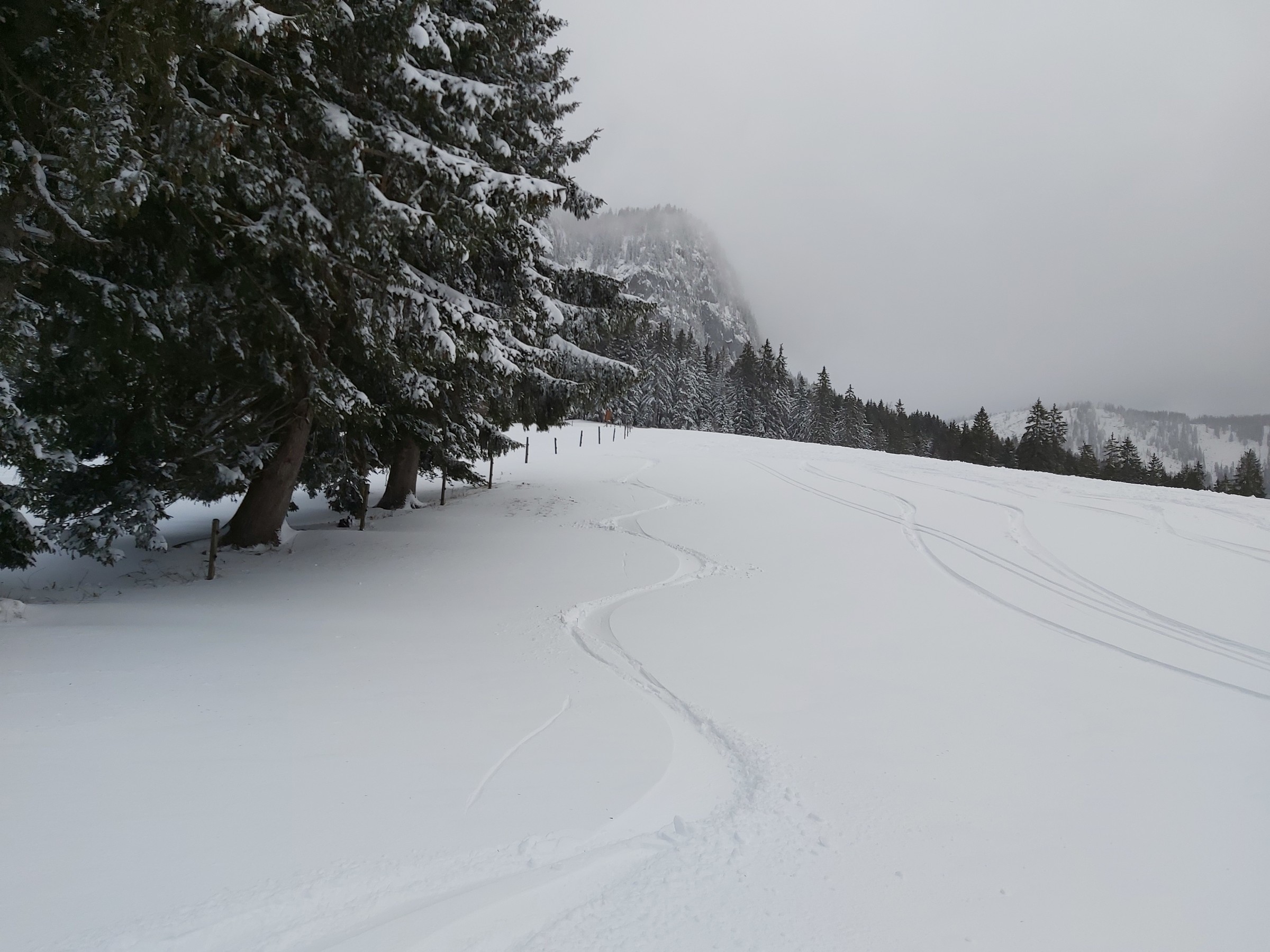 Man sieht es kaum, doch hier waren die richtigen ersten Carvingschwünge der Saison.