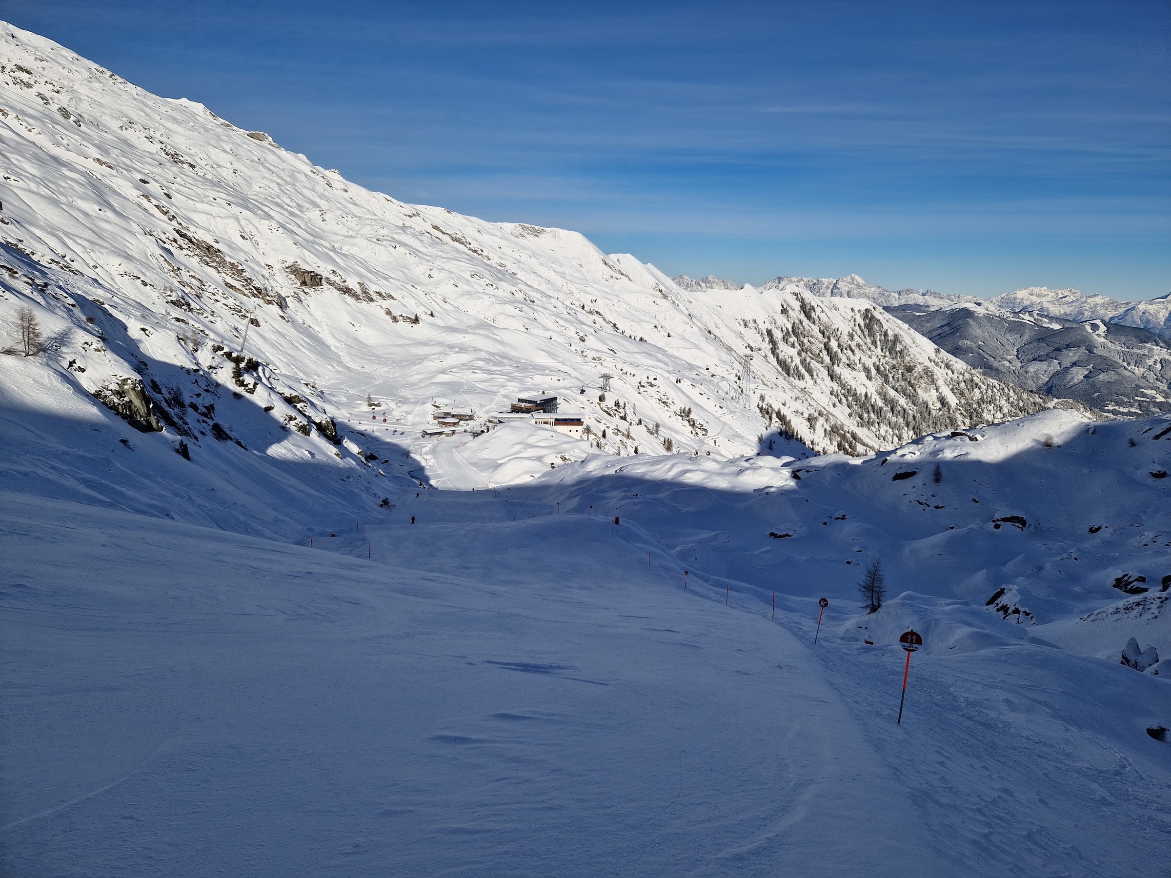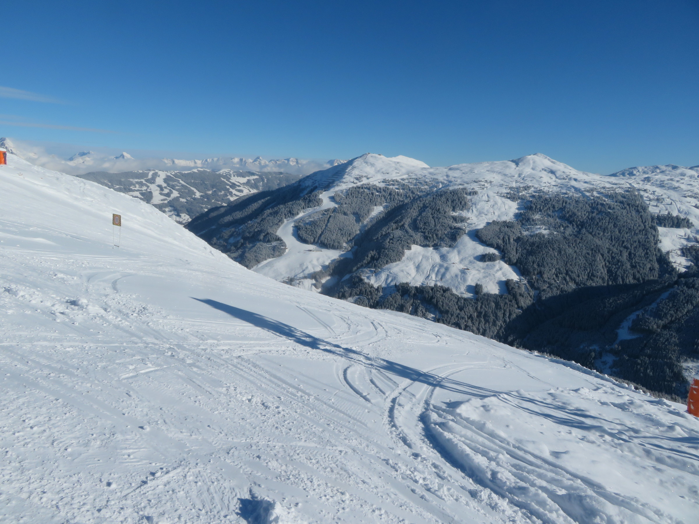 In Summe würde ich den Schnee als wesentlich besser als am Kitzsteinhorn gestern bezeichnen. Respekt an Saalbach dafür, dass sie trotz der prekären Schneelage alle wichtigen Lifte und dazugehörigen Pisten offen haben. In anderen Gebieten in Reichweite von Zell am See ist das Angebot sehr stark eingeschränkt mit jeweils ein paar wenigen Liften (Gastein, Schmitten, Hochkönig, Kitzbühel-Resterhöhe), was derzeit für uns gegen einen Besuch spricht.