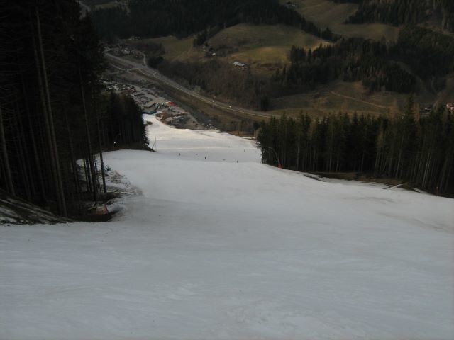 Die Hochwurzen war wie die ganze Reiteralm wirklich Super Bestens befahrbar, da muß ma nochmal runter zum 4 er... und von oben einmal zur Mittelstation GUB, und dann nochmal hoch. Leider wars am vormittag im unteren Bereich neblig, d.h. kurz schlechte Sicht und unterhalb von der Nebelobergrenze wieder Beste Sicht, aber ohne Sonne. So gings dann die etwas nervige Schiebestrecke entlang vom 6 KSB und anschl. DSB runter zur ``Goldenjet`` GB. Ab der Stelle, wo die Piste rot bezeichnet iss, war sie im Besten Zustand bis zur Gondelbahn, Superabfahrt.