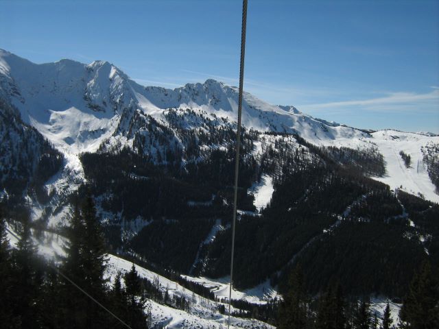 Blick vom Rohrmoos 6 er auf die Hochwurzen mit der GUB Strecke sowie Schlepper und 4 KSB vom Winterer auf den Gipfel
