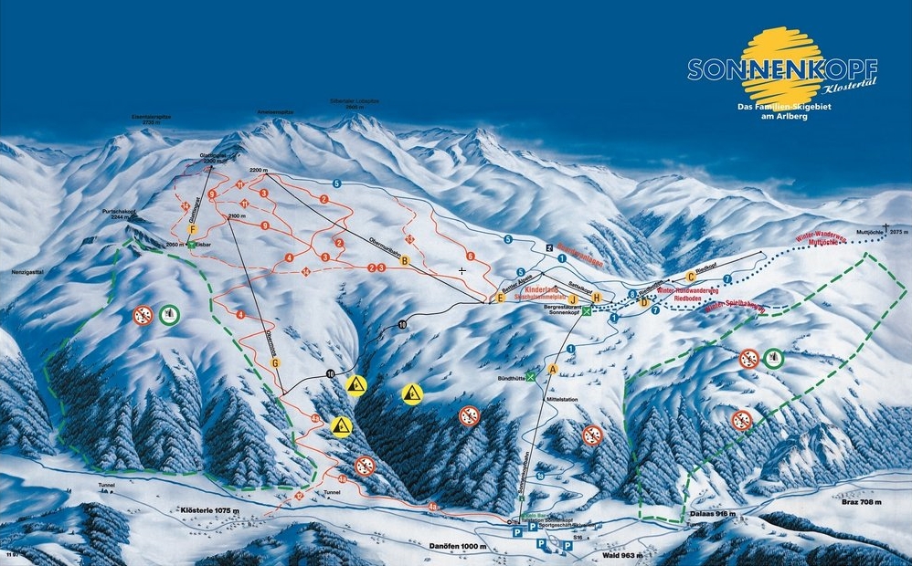 Da der Sonnenkopf bisher sehr spärlich hier vertreten ist und meist zu unrecht auf der S16 rechts liegen gelassen wird, noch ein paar erklärende Worte zum Skigebiet, das man eigentlich in drei Teile separieren kann: