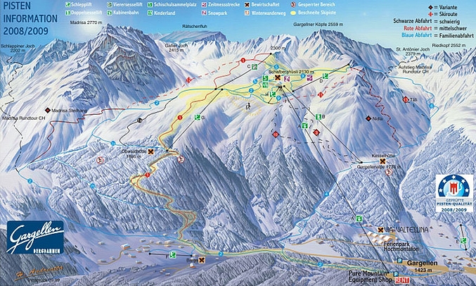 Vom Morgen an war es schon recht windig ... erster Indikator ist immer die 4 SB Gargellner Köpfe, die Bahn aus italienischem Hause ächst als erste im Wind (aber auch ohne, aber das ist eine andere Geschichte