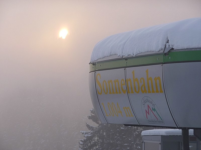 Wetter: vormittags wolkenlos, nachmittags harmlose Quellwolken bzw. leichter Nebel bei der Talstation, Temperatur von -11°C(am Parkplatz) bis -13°C(am Berg), kaum Wind.