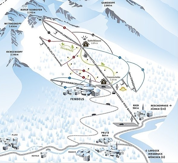 Beschaulich, klein und sonnig ... aber dennoch im Schatten. Im Schatten der gegenüberliegenden und stets im Panorama präsenten Skidimension SerfausFissLadis. Bei meinen unzähligen Besuchen in eben dieser, habe ich immer hinübergeschaut ins Gebiet zu Fuße des Roten Schrofens. Aber die Größe des einen Gebietes hat mich bisher immer davon abgehalten mal einen Tag in FendelsRiedPrutz zu verbringen. Neugierig war ich heuer doch, wie sich die überschaubaren 16 Pistenkilometer darstellen. Also war das Ziel für den Samstagvormittag klar, auch wenn es schon Überwindung kostet bei so einem Traumtag nicht nach SFL zu fahren