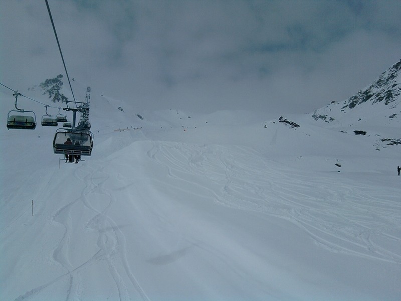 Allgemein: Heute ging es wie am SA los, dann allerdings zum SchneeExpress. Dort sind wir die gesperrte Abfahrt zwischen Schnee Express und Krössbichl runter, davor überhalb des Funparks rüber. Bei der Abfahrt gab es immer wieder Stellen, an denen das totale Kunstschneeeis war und man nur noch hoffen konnte, auf den Brettern zu bleiben, meinen Vater hats gleich mal hingelassen und an der Backe aufgeschürft. Unten hinaus konnte man dann schön noch im pulver fahren. Nach dieser Fahrt sind wir zum Sunjet, 1/2 mal gefahren und wieder zum SchneeExpress. Diesmal die Eisstellen umfahren und schon gabs eine quasi Traumpiste, leider sind dort dann immer mehr Menschen gefahren.