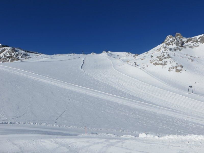 Au weia, die Trasse des SL Schladminger Gletscher schaut gar nicht gut aus. Das die Trassen von Gletscherschleppliften auf Dämmen verlaufen ist mittlerweile nicht ungewöhnlich, jedoch schaut der Abschnitt überhalb der Kurve nicht gut aus. Das ist sicher an manchen Stellen kein Gletscher mehr.