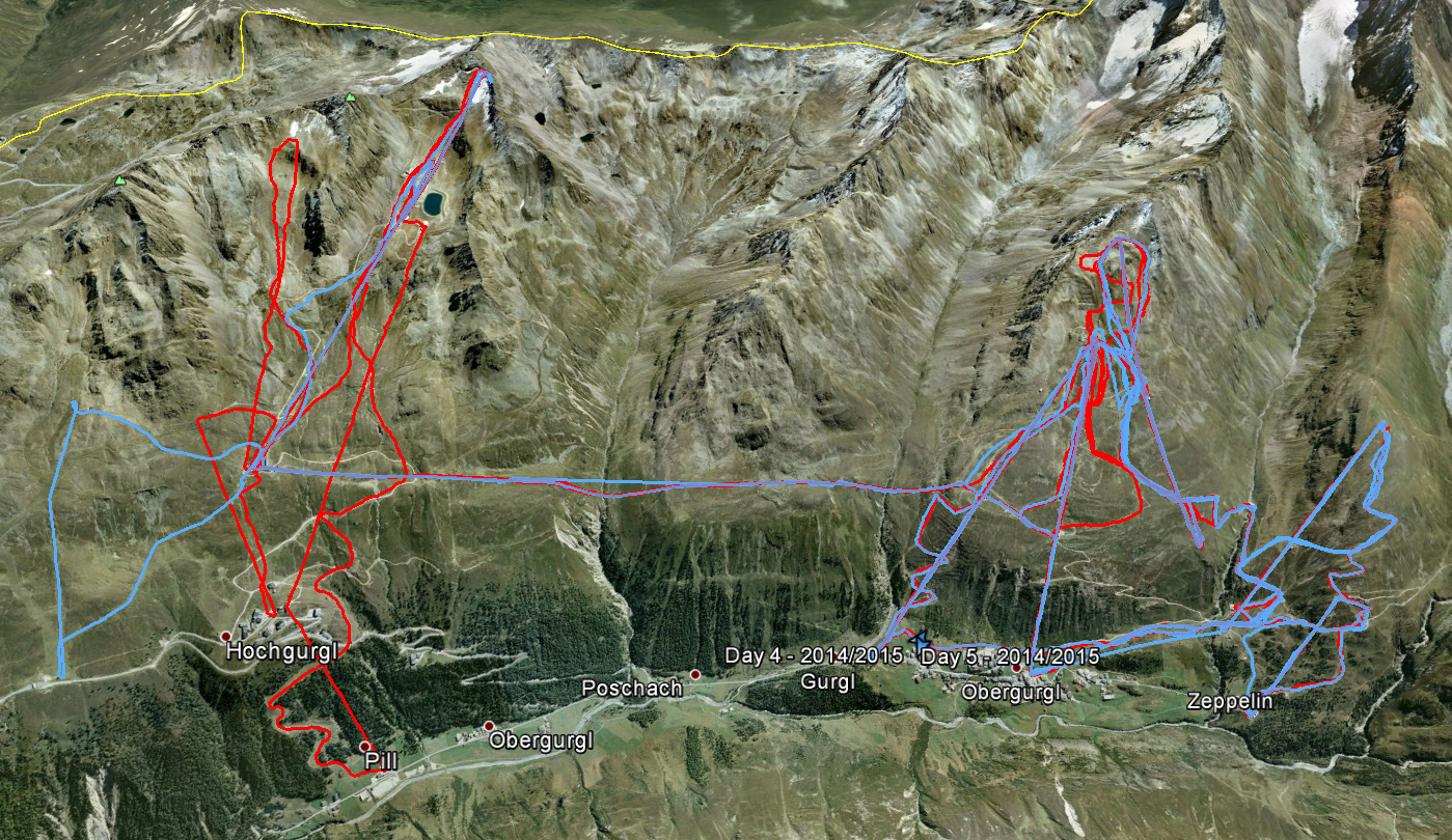 Obergurgl und Hochgurgl sind jeweils zwei Ortschaften mit zwei Skigebieten, diese werden mit dem 3,6 km langen Top Express verbunden. Fahrzeit ist laut lift-world.info 10 Minuten, wir waren allerdings 17 Minuten unterwegs. Alle wichtigen Pisten sind ausschließlich von kuppelbaren Anlagen erschlossen, außer in Hochgurgl, dort gibt es noch zwei Schlepplifte. Der Kirchkarlift wird aber nächstes Jahr durch eine Gondelbahn ersetzt werden. Die Pisten in Obergurgl sind grundsätzlich steiler und das Ötztal ist dort auch ziemlich eng. In Hochgrugl gibt es ein paar flachere Pisten und das Panorama wirkt weitläufiger.