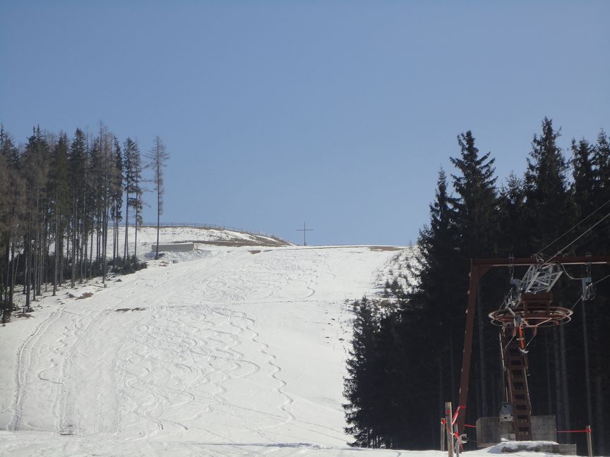 Diese "Piste" vom Gipfel weg gibt es erst seit 2005. Da wurde in Vorbereitung für ein Sesselbahn/Gondelbahnprojekt der Wald gerodet und eine Beschneiungsanlage errichtet. Ausführliches findet man hier im Forum bei den News.