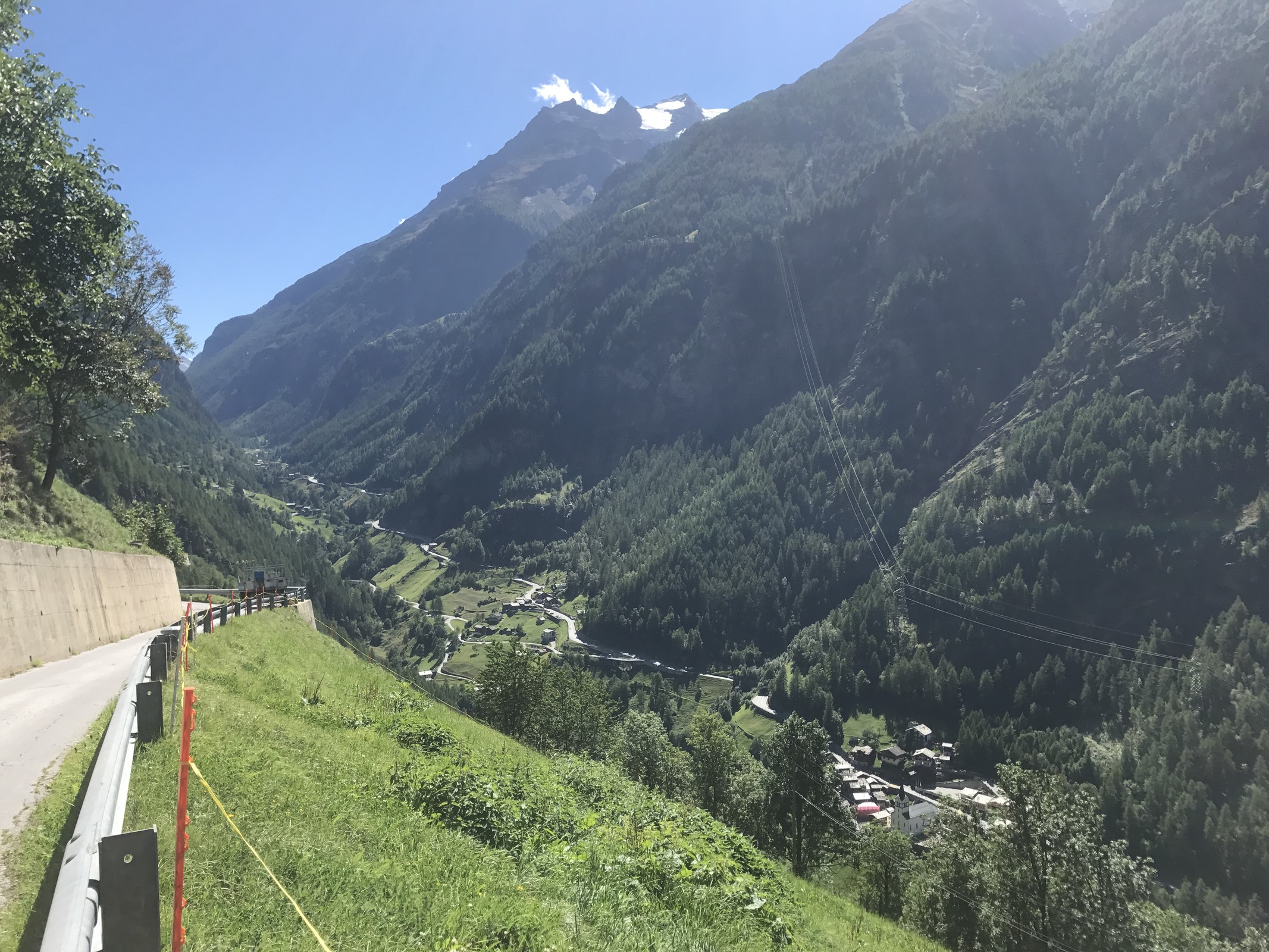 Die Aussicht auf 2400m ist sehr schön und auf der Talfahrt hat man einen schönen Blick ins Saastal und auf Saas Fee: