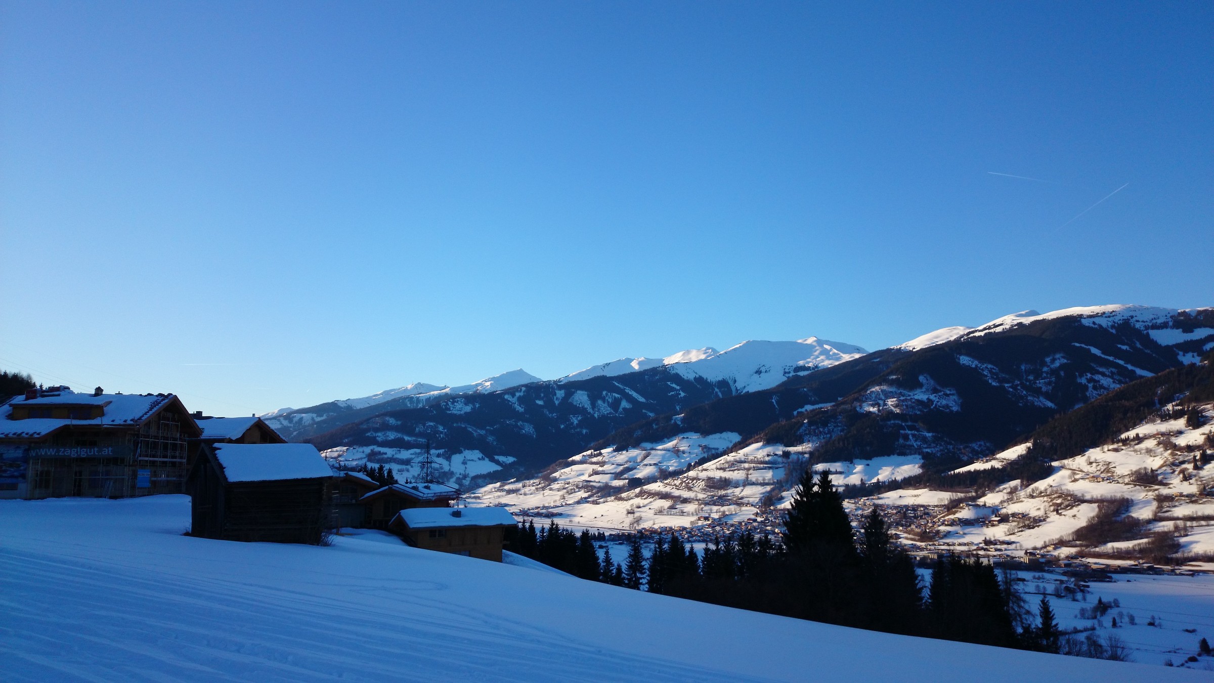 ( vielleicht wollen sie so viel Schnee wie möglich für ein Schneedepot über den Sommer zusammen bekommen...) Abends die Abfahrt im Maiskogelgebiet mit Blick Richtung Mittersill und Kitzbüheler Berge