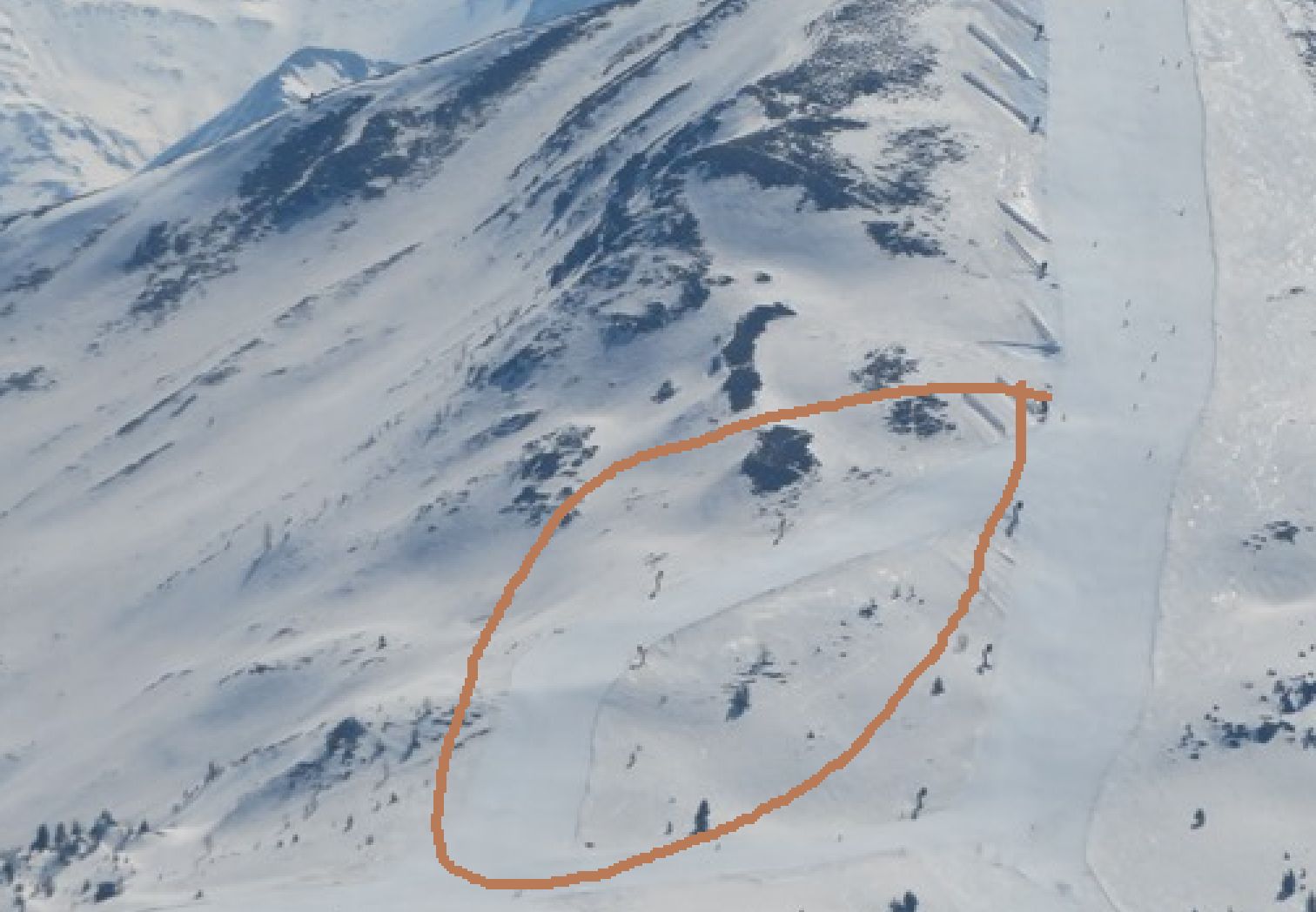 Die gleiche Blickrichtung im Zoom zeigt vor allem die Piste H3 von oben