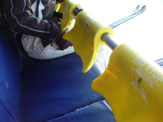 Der Kinderschutz ist gut für die Kleinen und Gewöhnungsbedürftig für die Großen. Da hat so mancher seine Skistöcke eingklemmt.