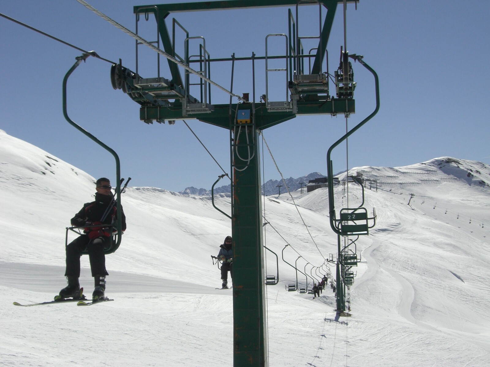 Dieses Foto hätte so auch schon in den siebziger Jahren gemacht werden können. Die beiden alten Lifte, die Abfahrt zwischen den Stützen und das alte authentische Ristorante… ich find es einfach geil. Talstationen der parallelen Sesselbahnen. Da ich aus Zeitgründen nicht noch weiter bis nach Sauze D`Oulx abfahren kann, mache ich auch hier wieder kehrt und entscheide mich für die rechte Marchisio Bahn, mit der ich gemütlich wieder nach oben schwebe. Wer die alten Bahnen noch fahren will, sollte sich beeilen, da diese vermutlich nicht mehr lange stehen werden und dann vermutlich durch eine 6KSB ersetzt werden.