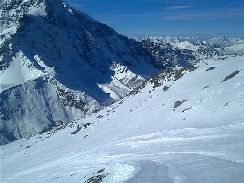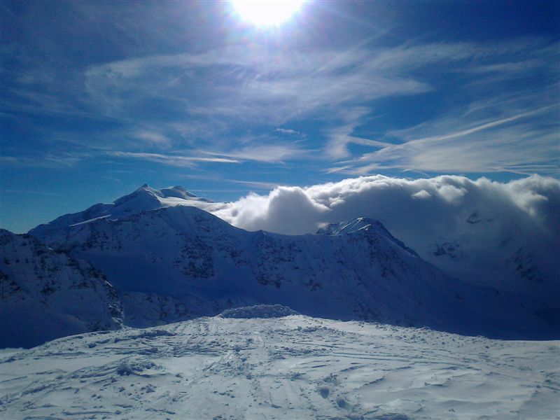 Trotz Ferienende befürchtete ich auf den Gletschern in AUT einiges an Betrieb. Außerdem wollte ich bei dem angekündigten Wetter wirklich ins Hochalpine. Im Pitztal war ich schon im September; Kaunertal wäre eine Option gewesen, aber die Schneelage (wohlgemerkt vor dem Schneefall) hatte mich nicht überzeugt, genauso Stubai; Sölden kommt vsl. mit Gurgl am nächsten WoE mit Kollegen dran, Hintertux befürchtete ich zu voll und alles östlich des Inns hat mich ebenfalls nicht überzeugt. Zermatt/Cervinia war zu weit.