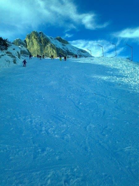 Am Berg herrschen derzeit beste Freeridebedingungen. Wunderbarer Pulverschnee, manches kaum verspurt (Lydia, vecchia pista, Canyon), manches teils fast pistenähnlich zusammengefahren (Hauptrouten). Mit Ausnahme von 100m Steinwüste am untersten, ostexponierten Stück liegt viel, oberhalb 2300m meterhoch Schnee.