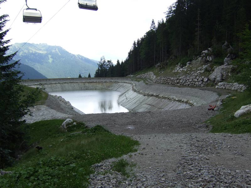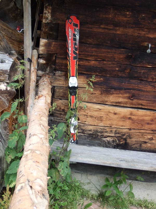 Dieser Blick wird aber in absehbarer Zukunft auch nicht mehr existieren: Irgendwann kreuzt dann die schwarze Grünseeabfahrt vom Roßkopf. Über diese Brücke schießt man i.d.R. im Winter in Abfahrtshocke hinweg um genug Schwung für die lange Fahrt zum Valepperalplift zu haben. Da kommt einem die Brücke immer richtig eng vor... Naja... Geschwindigkeit und ihre Tücken. Kurz hinter der Abfahrt und einer Flußüberquerung geht es rechts den Berg hoch. Betonung auf HOCH. Die Steigung ist schon nicht ohne.