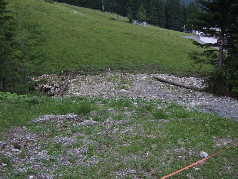 Der Fahrweg zum Stümpfling war an einer Stelle abgerutscht und hat auf der Piste für Unordnung gesorgt: