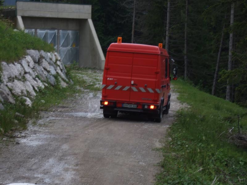 Dort huldigte ich nocheinmal den Überresten des alten Brecherspitzschleppers, dessen Überreste noch auf dem Parkplatz lagern: Die RoBas sehen vom nahen doch schon ganz schön mitgenommen aus. War ja auch nicht mehr der jüngste Kollege. Der Notausschalter wird auch nicht mehr benötigt. Er wurde wohl bei Betriebsschluss zu kräftig betätigt. Jetzt ist er ein Sinnbild für dieses Teilskigebiet. RIP Nun aber zu dem eigentlichen Grund meines Besuchs: Der neue Roßkopflift Entsprechende Baustoffe lagen auf dem Parkplatz bereit und warten auf Transport zur Baustelle Von hier aus machte ich mich jetzt wirklich auf den Weg. Am Polizeiheim vorbei ging es auf die ersten hundert Meter, die noch sanft über die Hügel der Valepperalp führen.