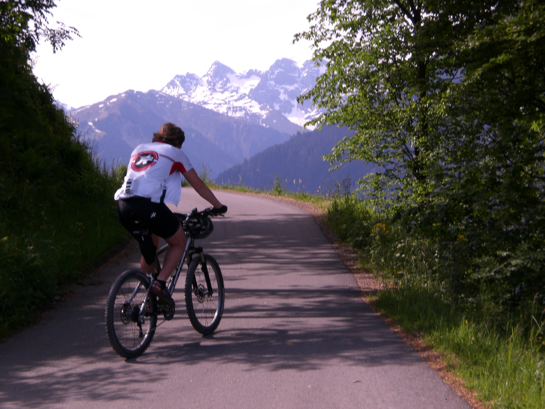 Mittwoch Abend beschlossen Kaldini und ich mal eine grössere Radtour zu machen, Ziel hatten wir schnell das Hochjoch ausgemacht hatte da eh schon mal eine Route ausgeguckt (s.o.). Da Kaldini nur Sonntag konnte war die Diskussion um einen geeignten Tag auch überflüssig und wir einigten uns auf Treffen 8 Uhr bei mir in Lindau. Xtream stiess dann auch noch zu uns und wir trafen uns um 20 nach neun in Schruns an der Hochjochbahn