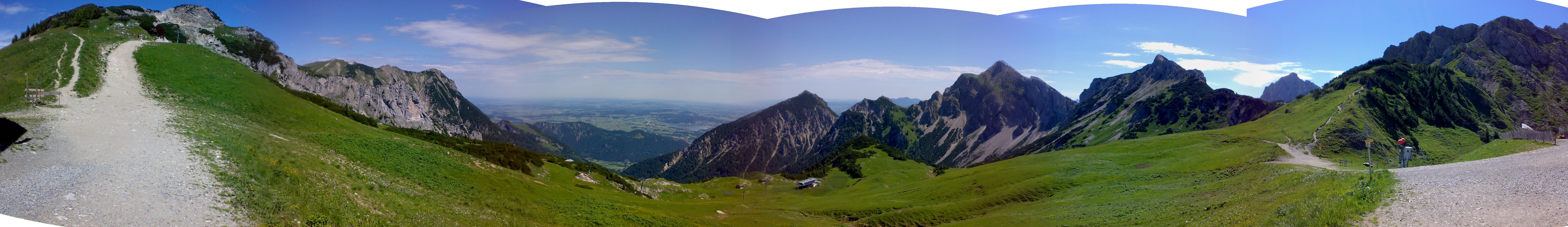 180°-Panorama vom Füssener Jöchl ins Alpenvorland: