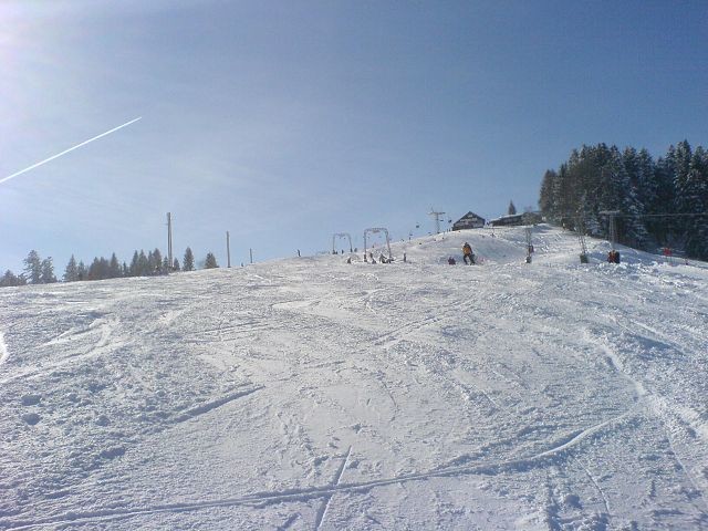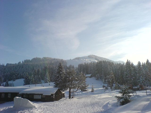 Oder man fährt ab rote Piste SL Wolzen über Feldmoos - Holz. Schöne Hänge - Endpunkt ist nähe Thur (kleine Insel). Schöne Hänge. Fussmarsch ins Dorf.