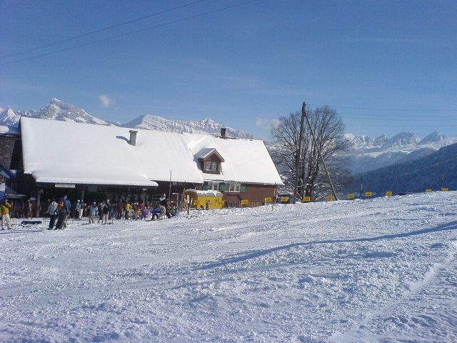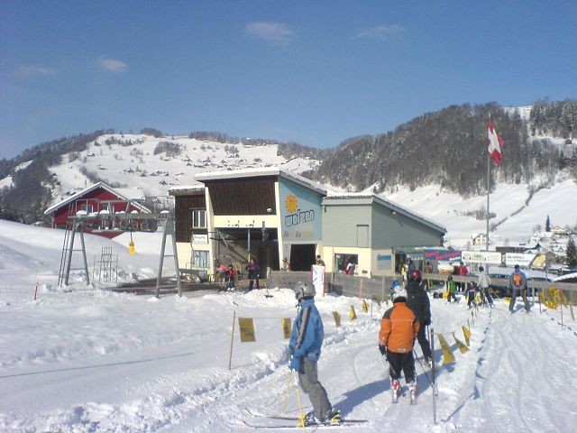 Die Wolzen ist ein kleines Voralpengebiet mit 12 km Pisten, der DSB Krummenau-Rietbach (740-1120), dem langen SL Wolzenalp (1100-1500), und dem kurzen SL Stalden (und 2 Ponyliften). Mit ihrer günstigen Familienkarte (CHF 80.-) ist es v.a. bei Familien beliebt. Ich hab eine Punktekarte, so lohnt es auch nur für zwei Abfahrten. Hier trifft man Familien, das Dorf, Geniesser, Wanderer, Schlittler, Boarder, rasende Carver und junge Skiatalente. Das Panorama sucht seinesgleichen!