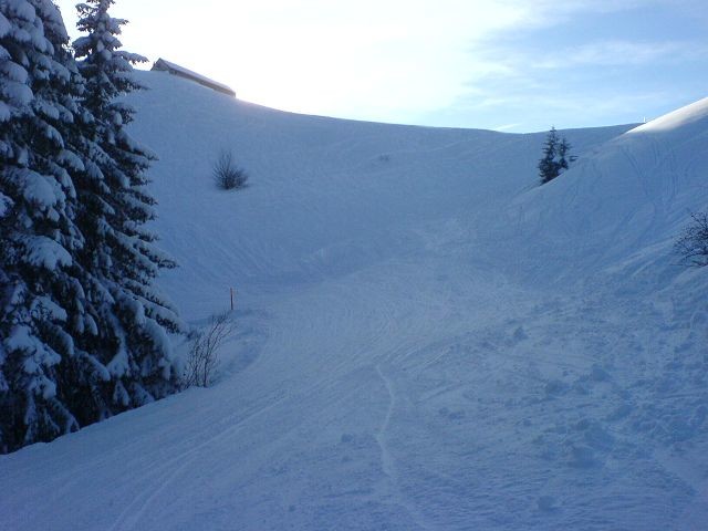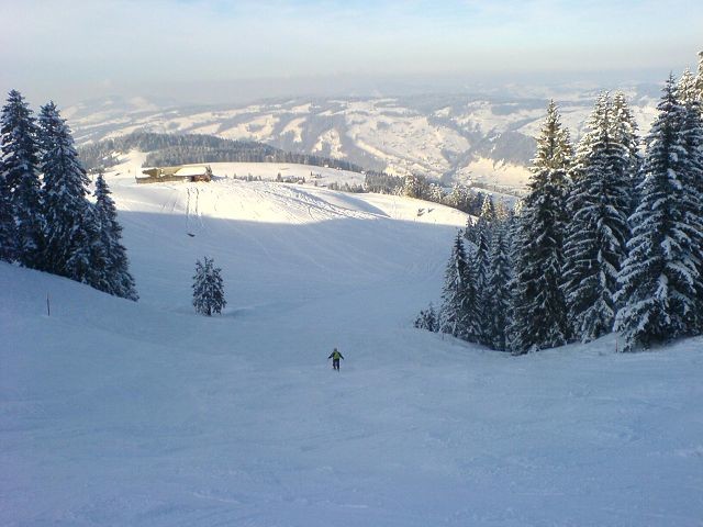 Mehrere Möglichkeiten: von ganz oben Bergstat. SL Wolzen zuerst kurz der roten Piste folgen, dann gerade aus weiter kurz durch Wald und über Superhänge ins Ijental. Allerdings ist das fürs Board ungeignet. Das Tal ist oben flach und bis man wieder Gefälle hat, muss man schieben (man ersäuft bei der aktuellen Schneelage). Ab oberhalb der Schneit wieder schöner Hang nach Nesslau (Schneiterbrücke).