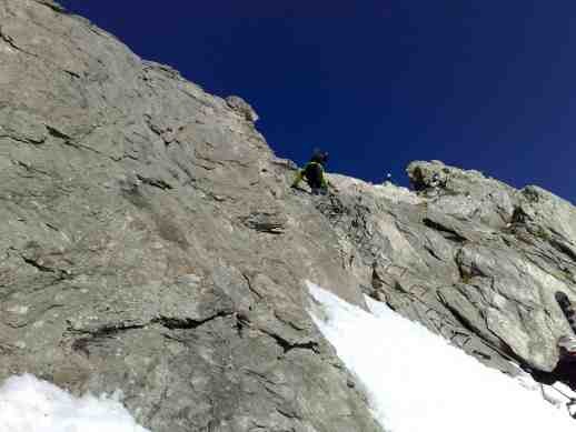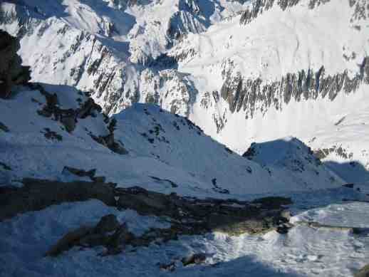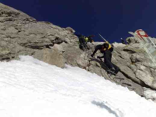 Dazu muß ich sagen, das ich noch nie einen Klettersteig gegangen bin oder auch nur Teile davon. Und beim ersten mal gleich mit Skischuhen (keine Tourenschuhe) und Rucksack mit Skiern drauf war für mich eine echte Herausforderung und für die Premiere schon fast einen Tick zu heavy. Aber der Ausblick und die Abfahrt anschließend haben alles vergessen gemacht. Weißt Du wo man hinkommt wenn man nicht nach links über die Fourcola de Val Strem geht sondern rechts in das nette Tal hinein über den Oberalpgletscher ???