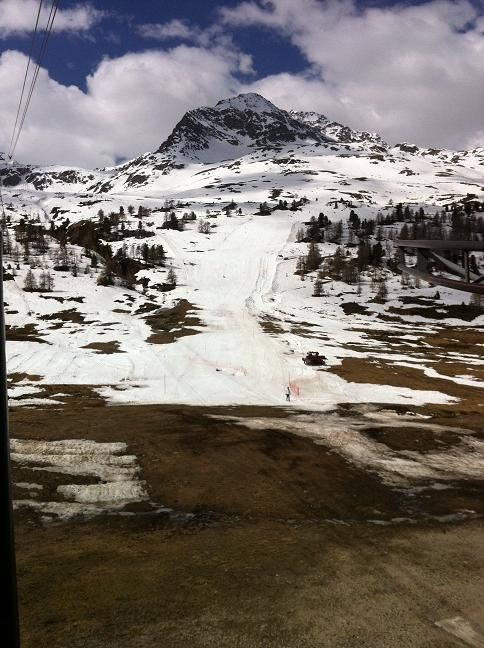 ^^Pista Polvere, die braune Stellen im Schnee werden langsam sichtbar. Ich bezweifle es, dass die Piste bis nächsten Sonntag durchhalten wird, vor allem der untere Abschnitt.