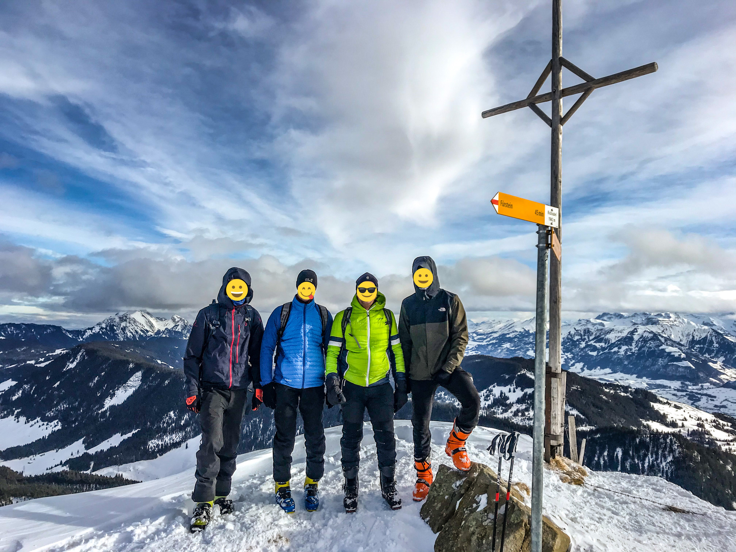 700hm, 1:50 Nach einem recht gemütlichen Aufstieg entschädigt traumhafter Sulz. Anfellen für bloss 10min ist zwar umständlich, aber wenn es sich lohnt.