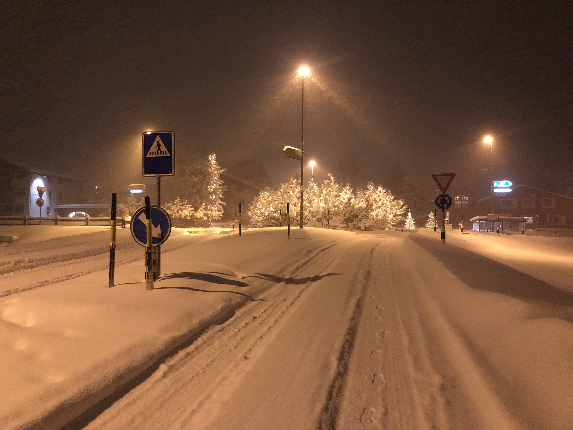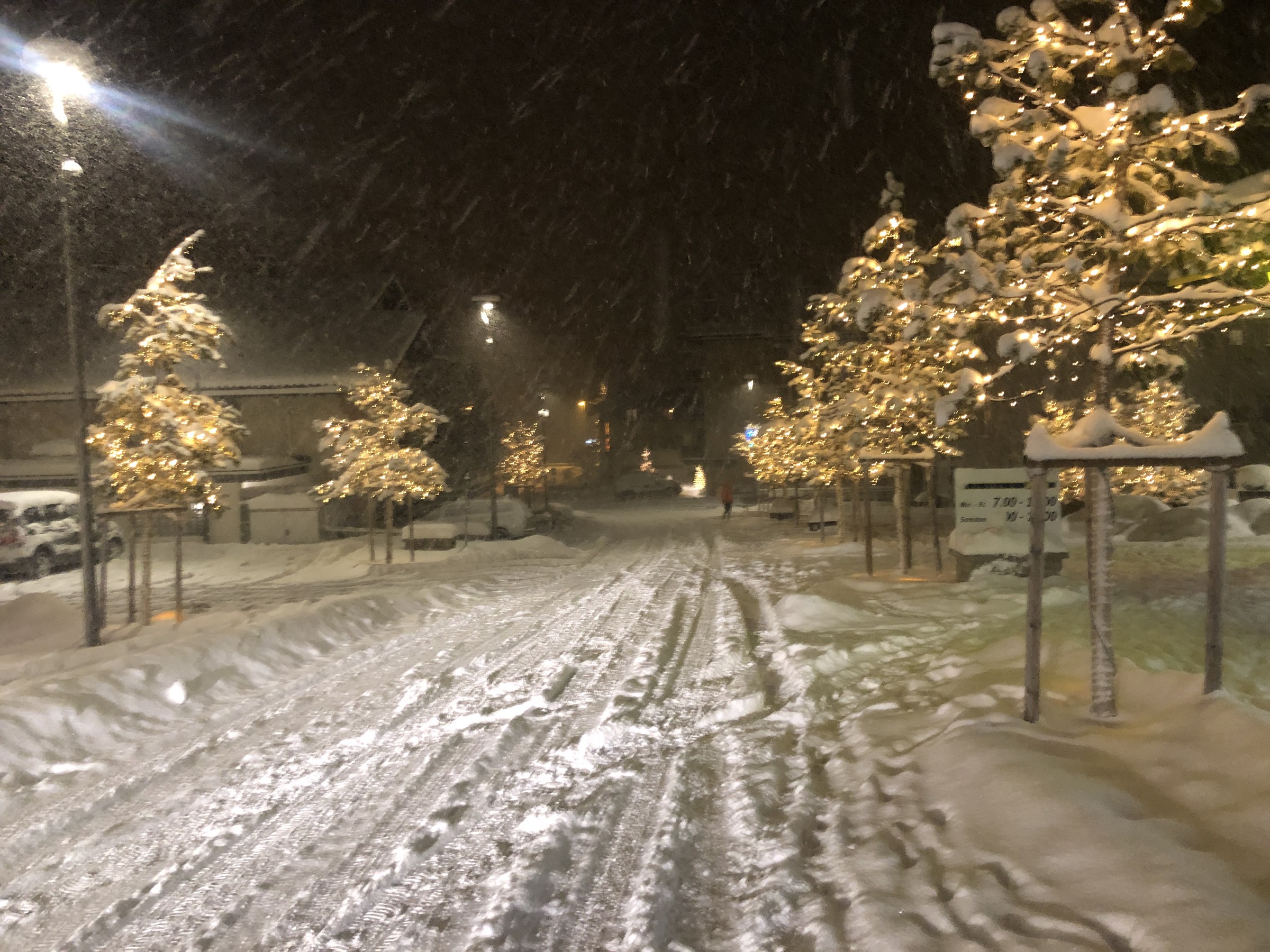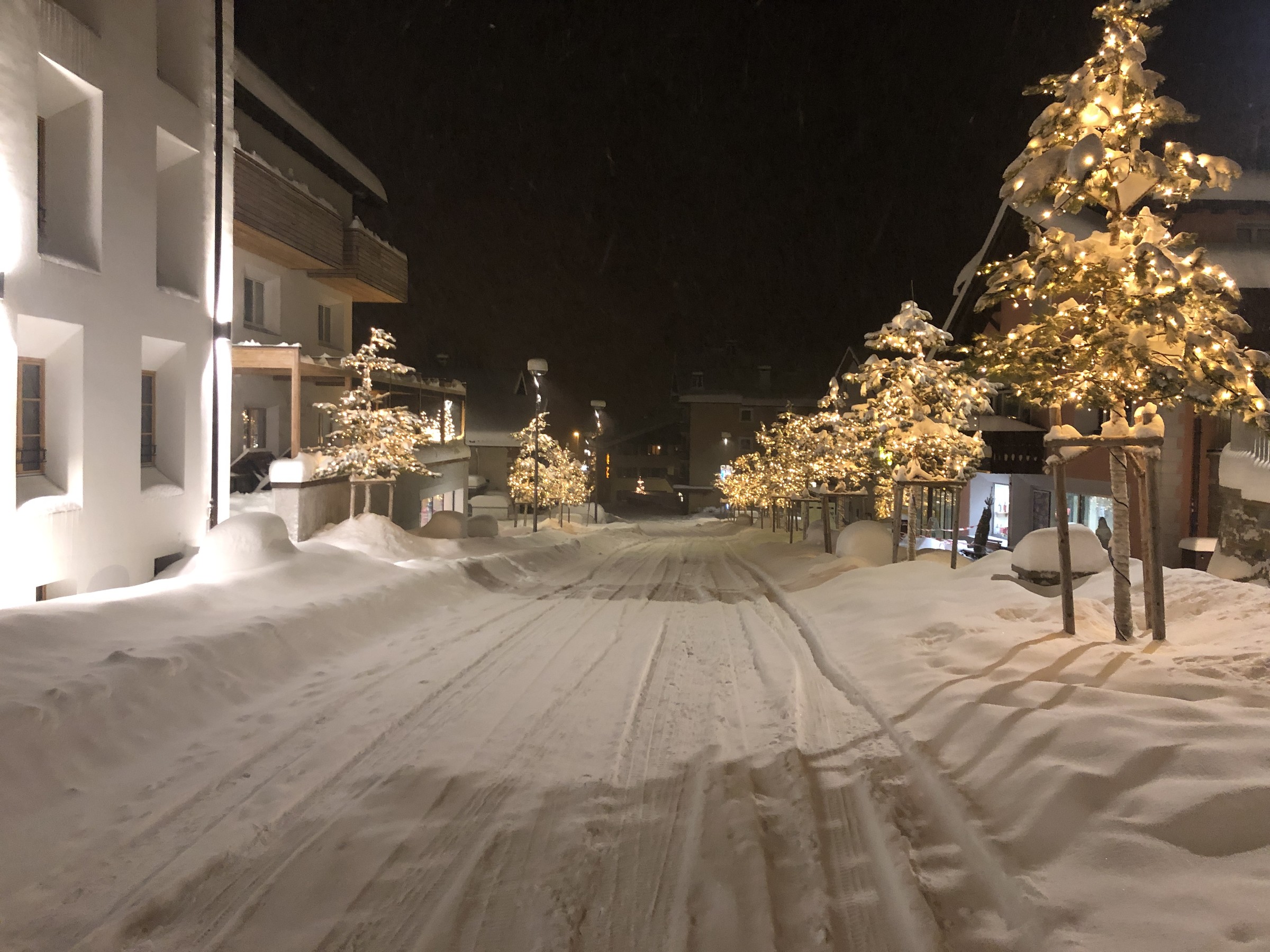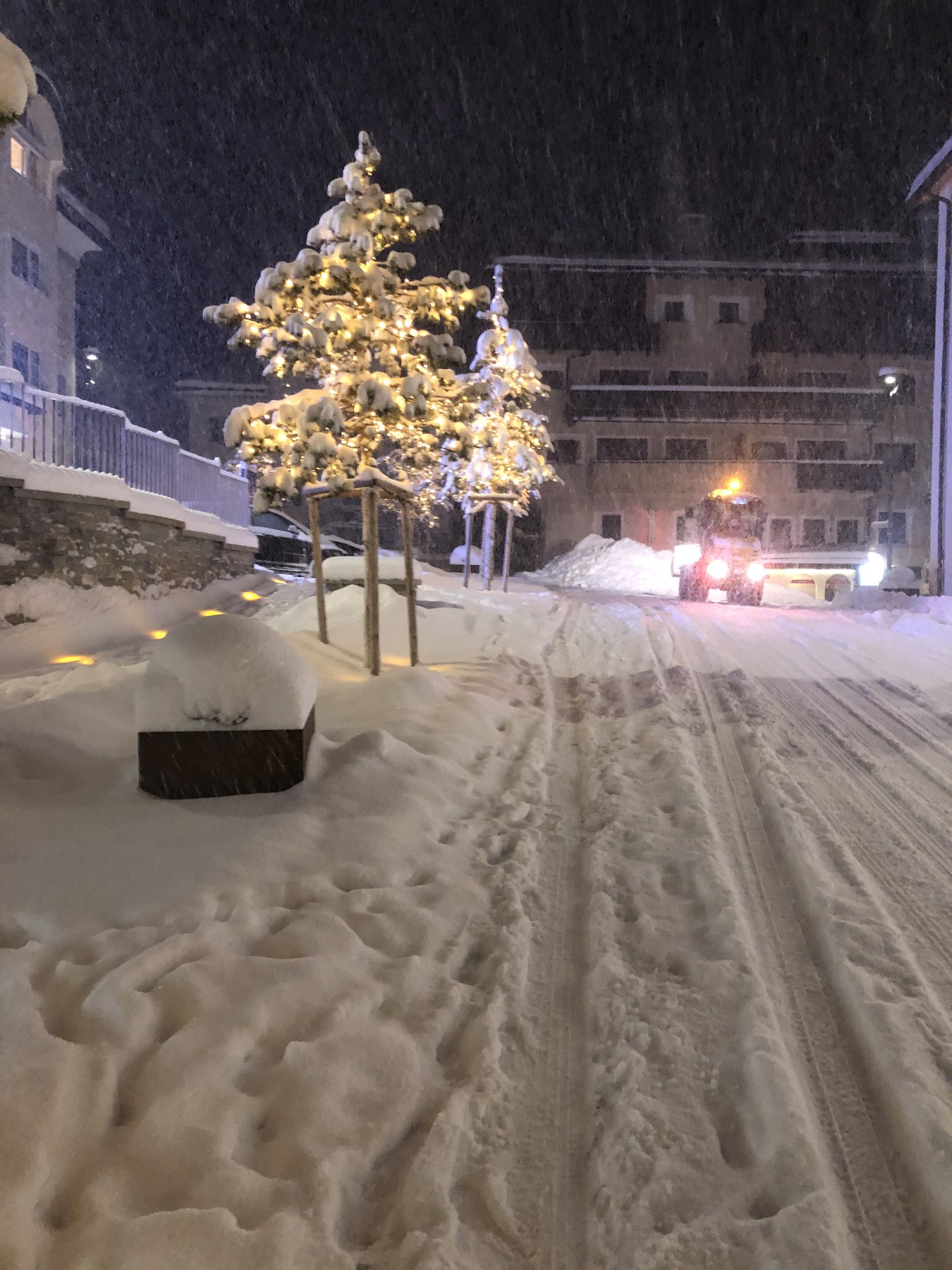 Von der Piste gibts nicht viel zu berichten. Kalt, windig, Schneefall, geschlossene Restaurants, abgesagter Weltcup, wenig Leute, eingeschränkter Liftbetrieb aufgrund der Lawinengefahr. Zudem öffnete Chantarella erst um 10:00h. Währenddessen werden die Schneemassen auch im Tal immer grösser: