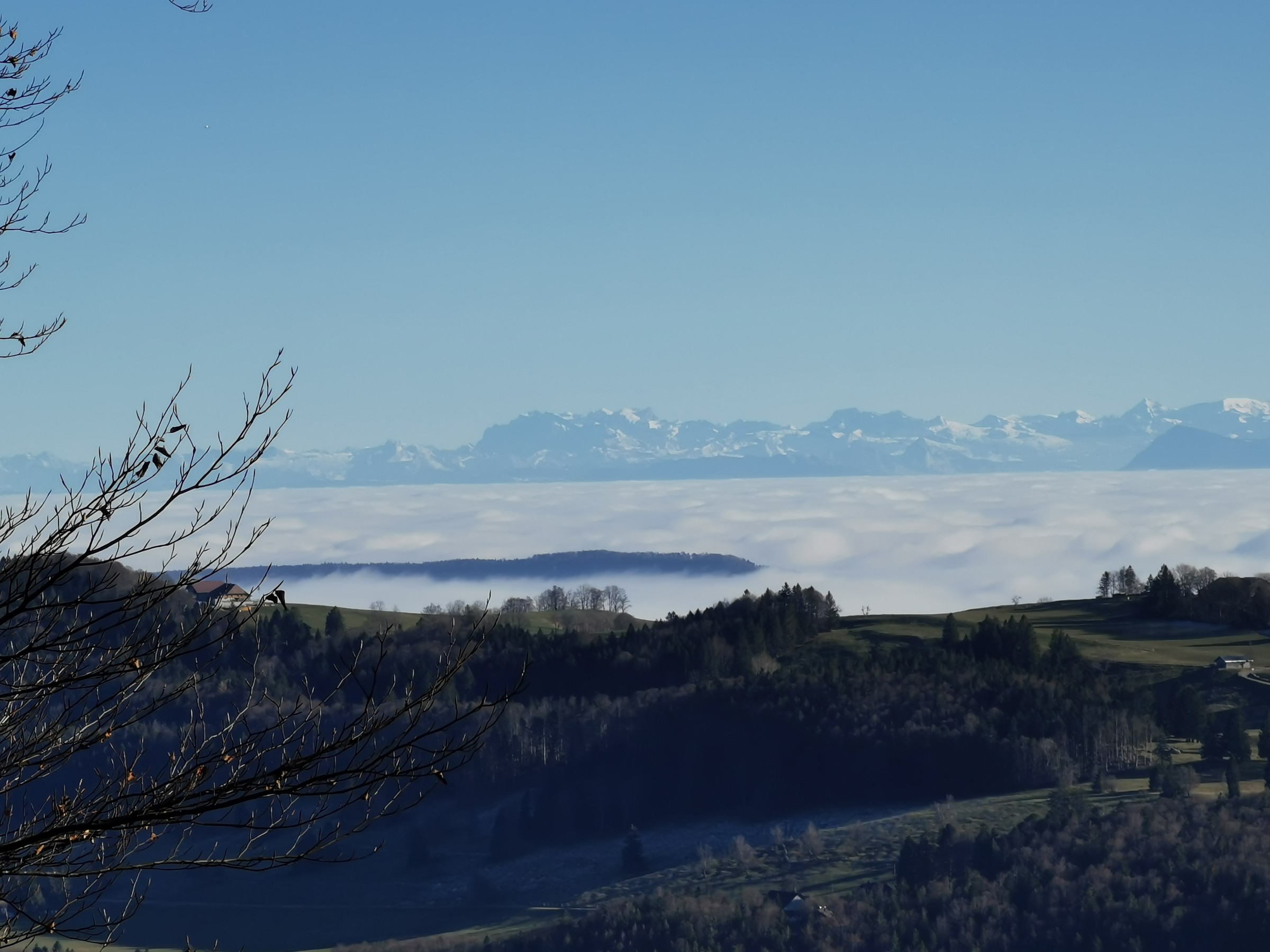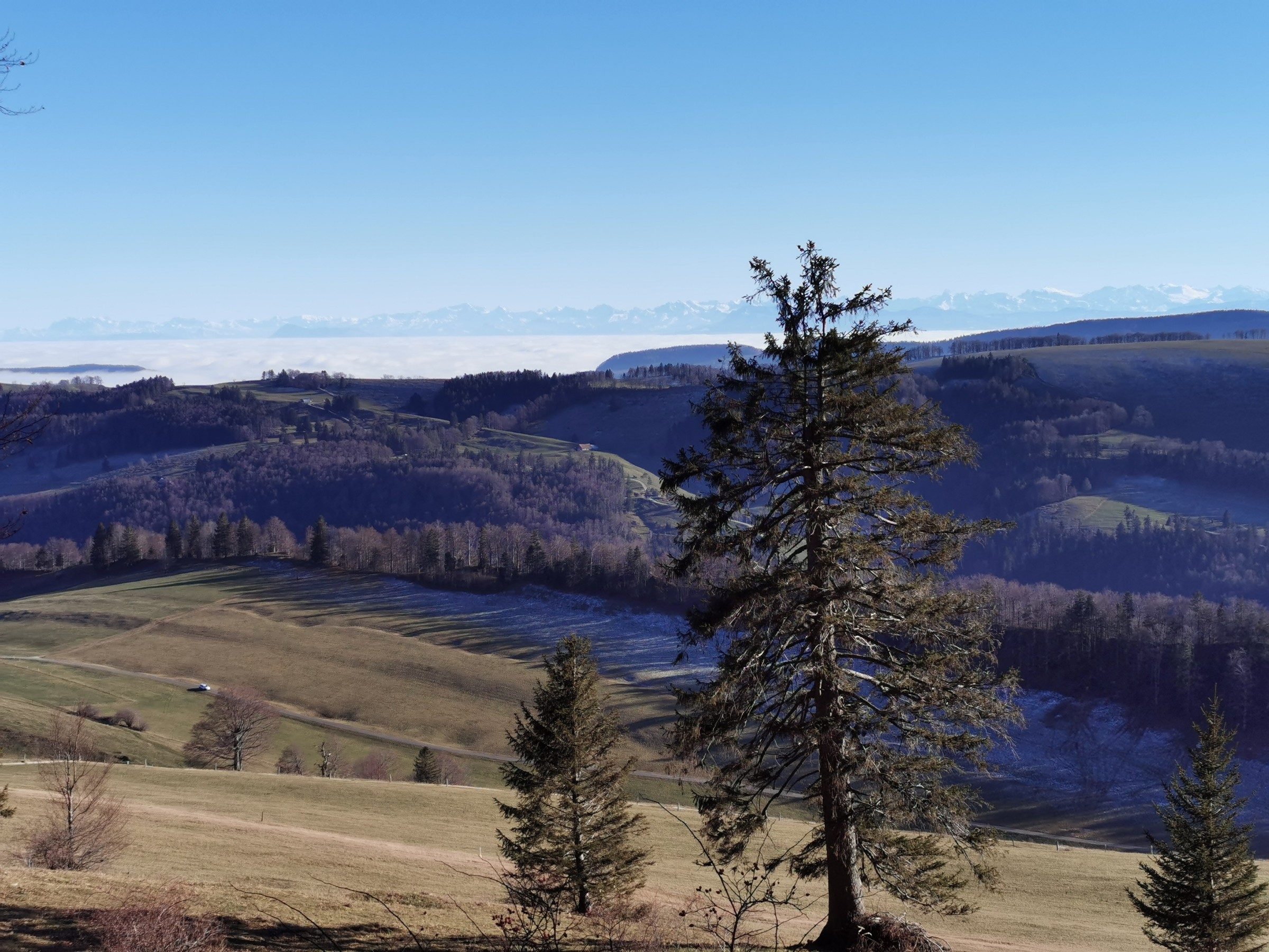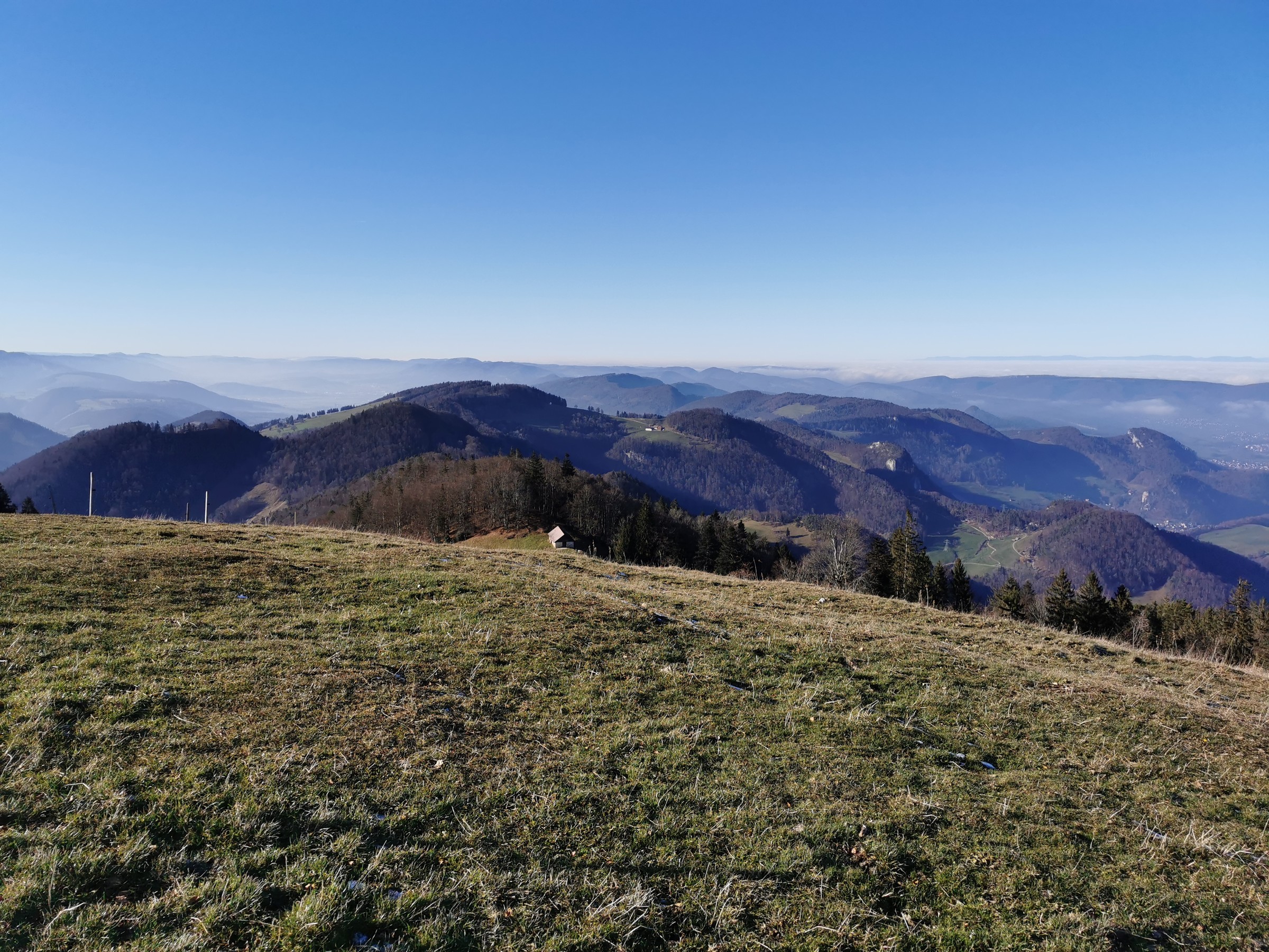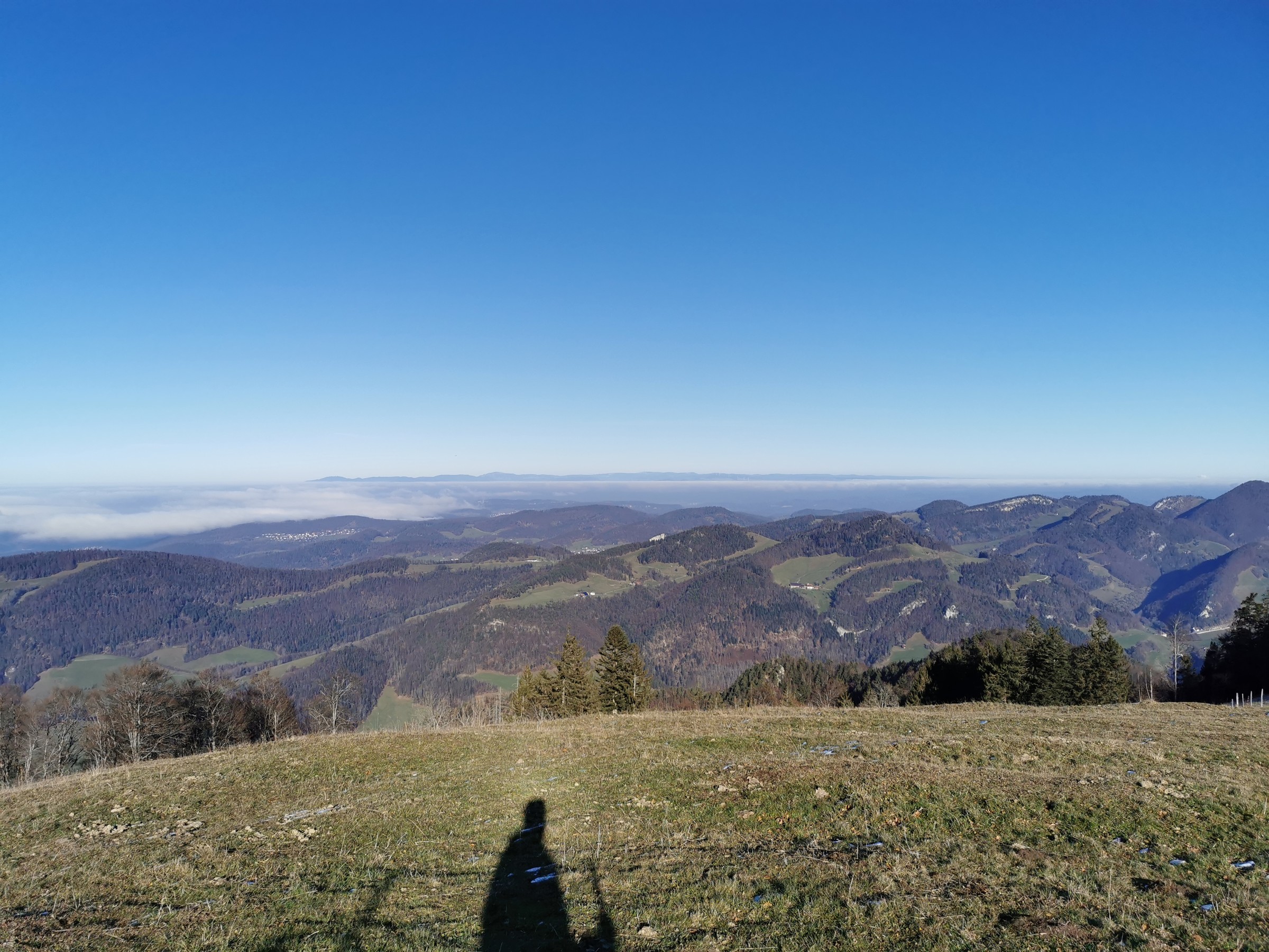 November, beste Fernsicht, ein paar Stunden Zeit? Nichts wie los in den Jura! In Lörrach nach geruhsame Frühstück aufgebrochen, in Basel noch jemanden aufgegabelt und nach 45 Minuten Anfahrt in Beinwil angekommen. Von dort auf eher langweiligem Forstweg 1,5 Stunden bergan, anschließend noch 45 Minuten auf Bergpfad. Oben toller Blick über die Jurahöhen in den Schwarzwald, die Vogesen und über das Nebelmeer des Mittelland auf die Alpen. Der Abstieg dann landschaftlich deutlich spannender als der Anstieg, am Ende noch vorbei am Kloster Beinwil. Aber ich lass mal die Bilder für sich sprechen...