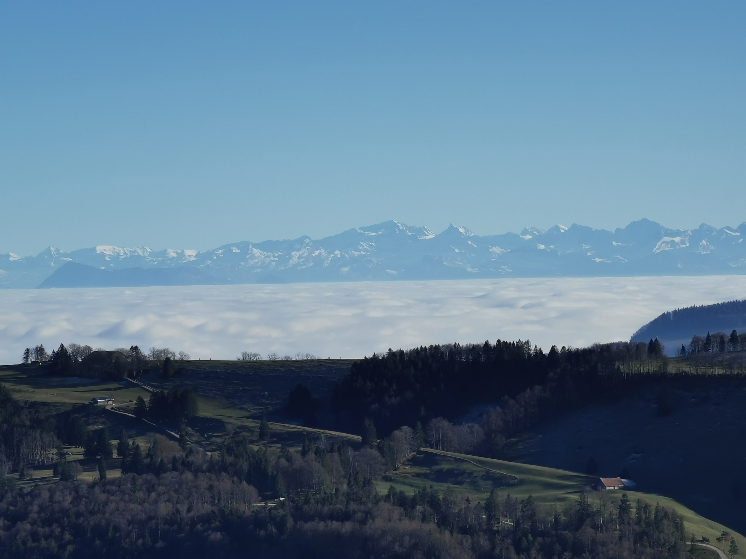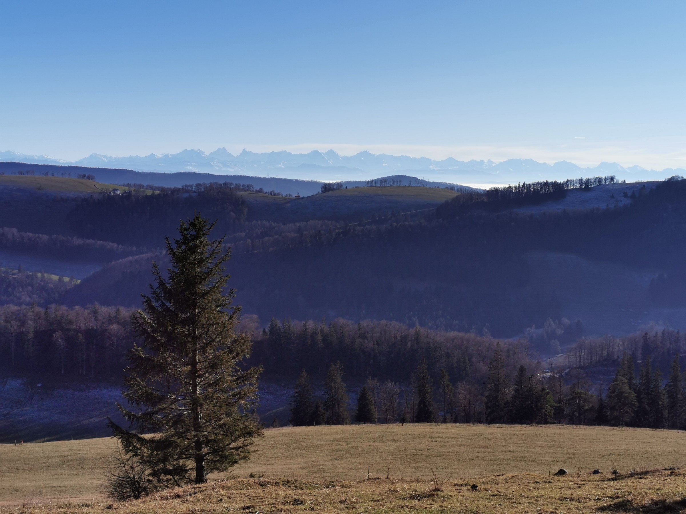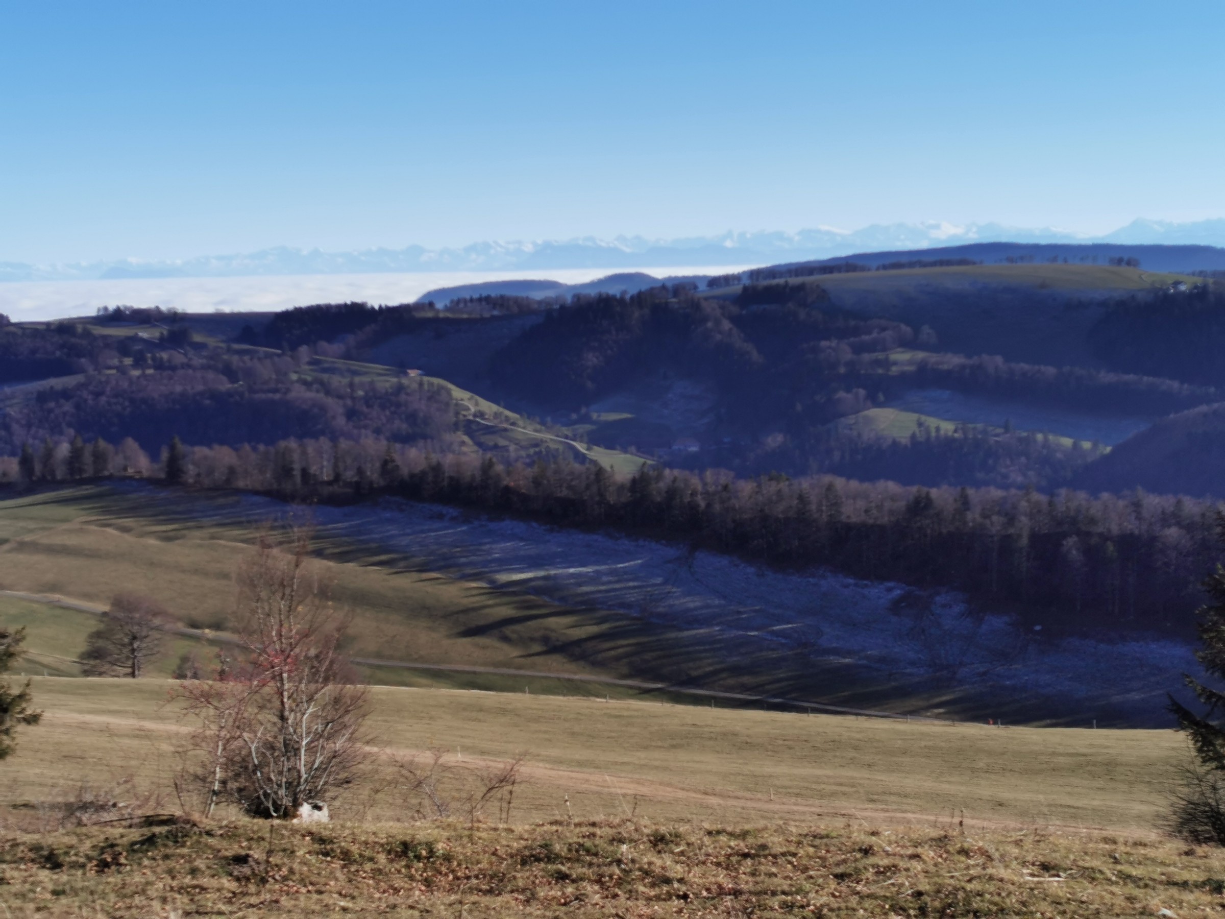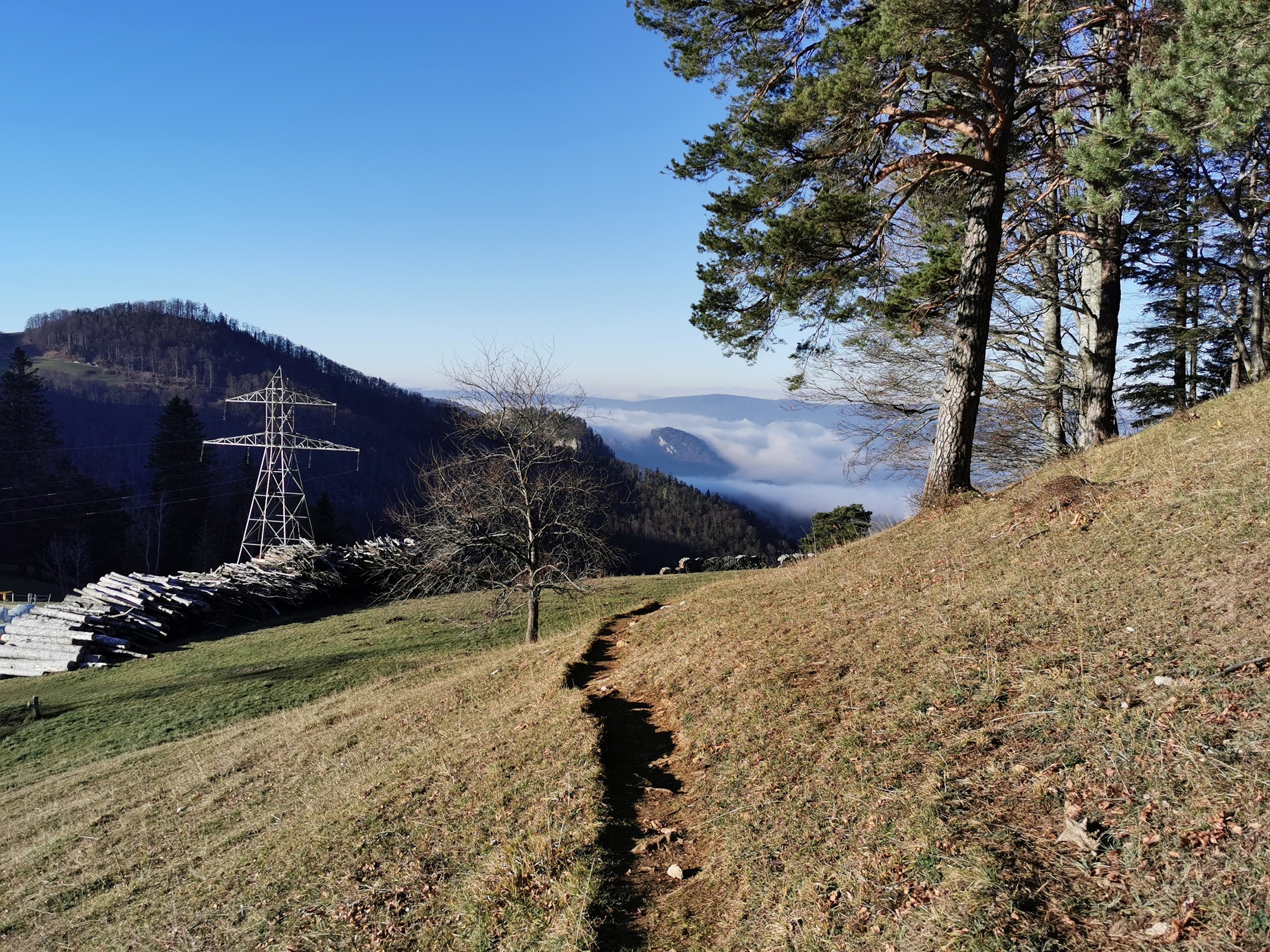 November, beste Fernsicht, ein paar Stunden Zeit? Nichts wie los in den Jura! In Lörrach nach geruhsame Frühstück aufgebrochen, in Basel noch jemanden aufgegabelt und nach 45 Minuten Anfahrt in Beinwil angekommen. Von dort auf eher langweiligem Forstweg 1,5 Stunden bergan, anschließend noch 45 Minuten auf Bergpfad. Oben toller Blick über die Jurahöhen in den Schwarzwald, die Vogesen und über das Nebelmeer des Mittelland auf die Alpen. Der Abstieg dann landschaftlich deutlich spannender als der Anstieg, am Ende noch vorbei am Kloster Beinwil. Aber ich lass mal die Bilder für sich sprechen...