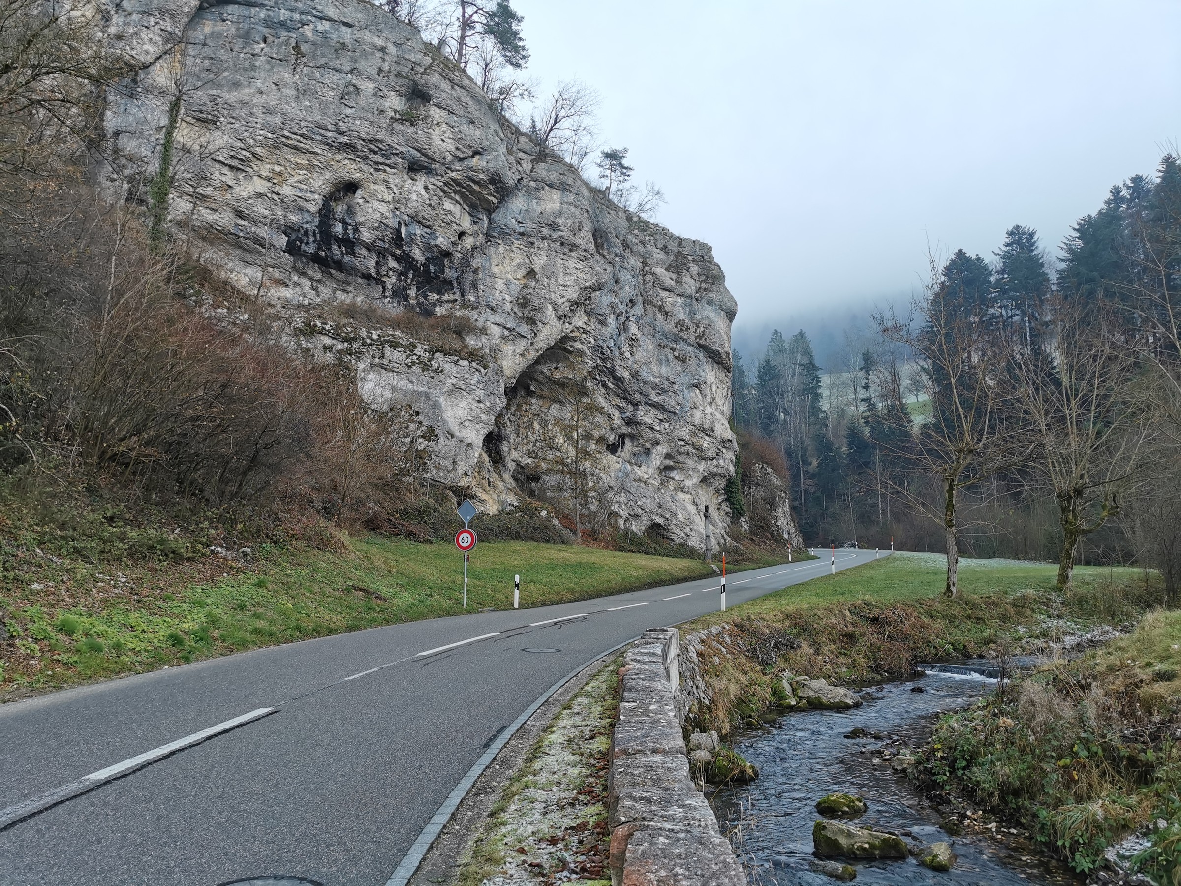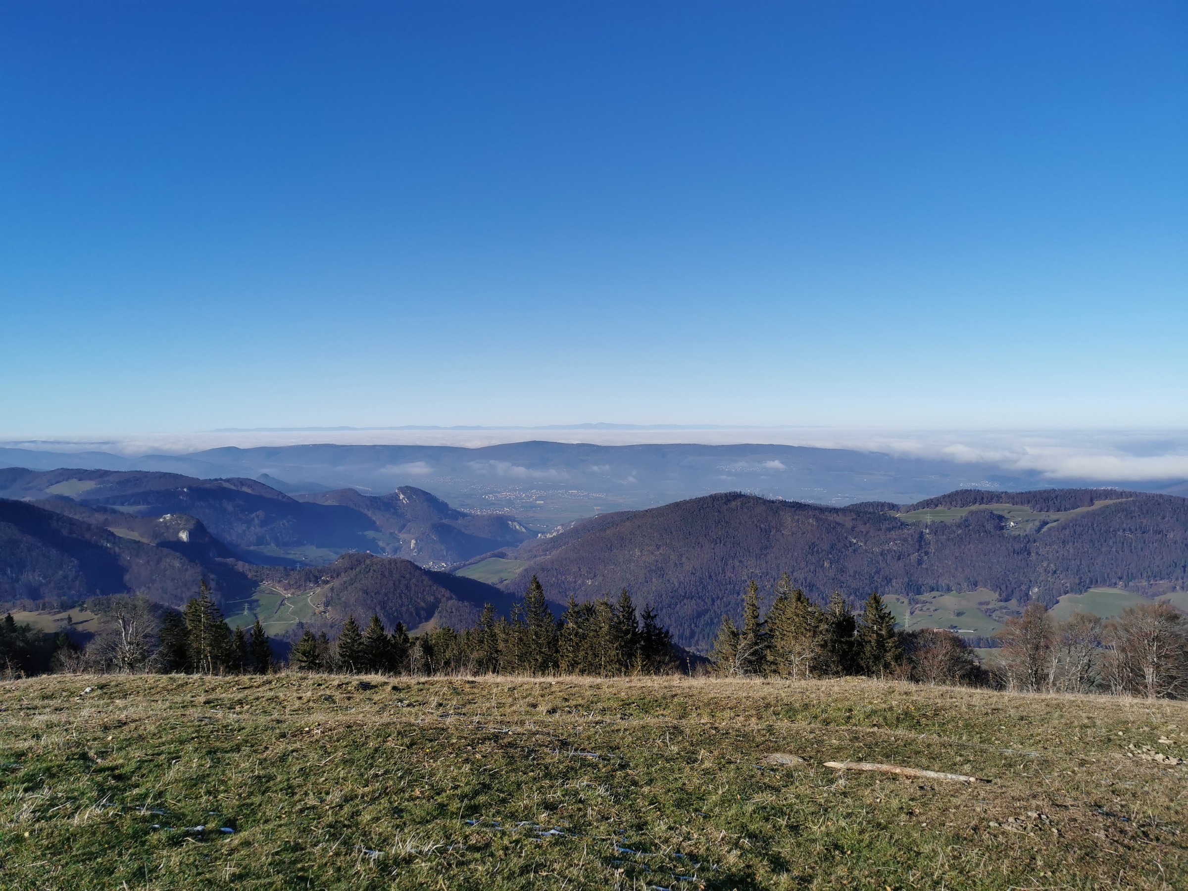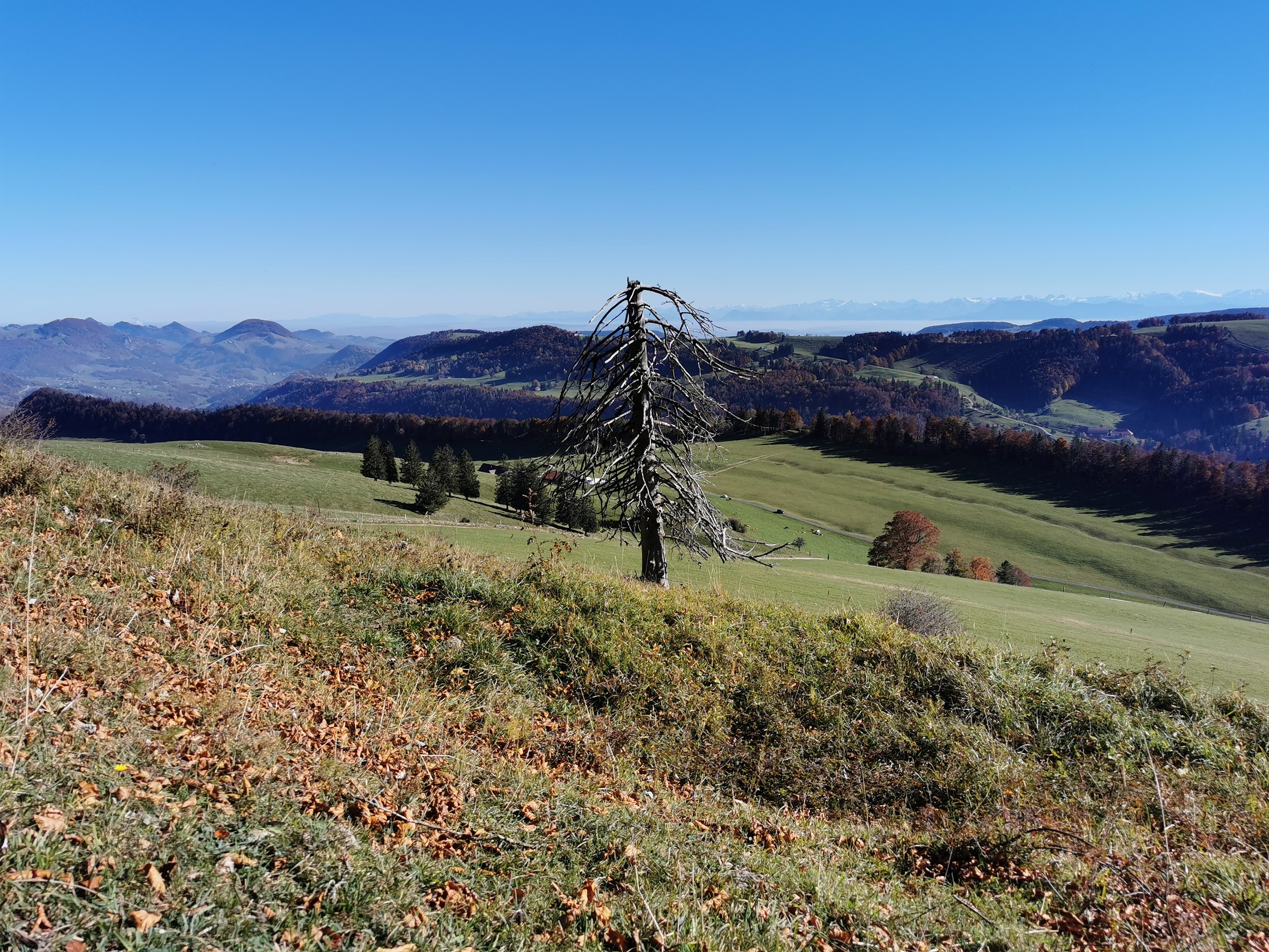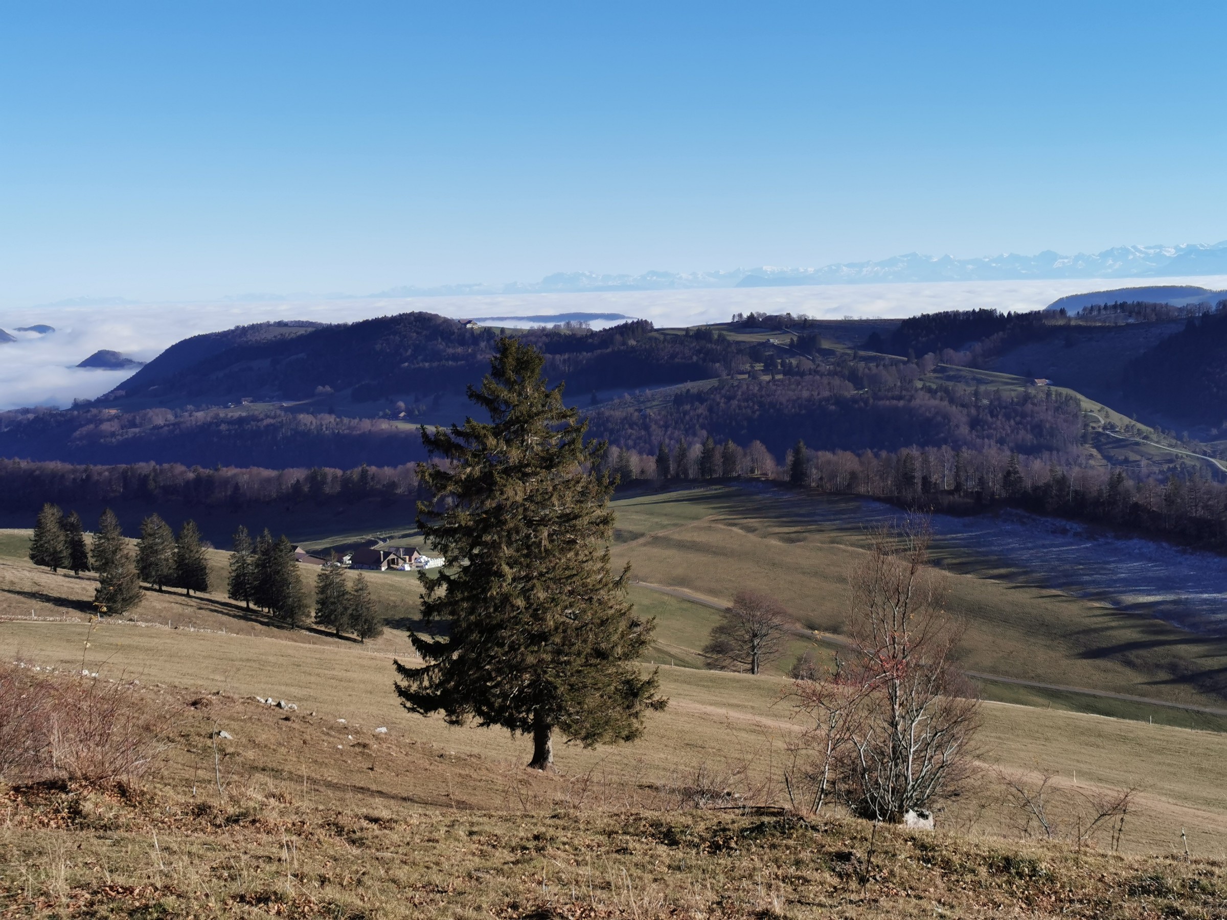 November, beste Fernsicht, ein paar Stunden Zeit? Nichts wie los in den Jura! In Lörrach nach geruhsame Frühstück aufgebrochen, in Basel noch jemanden aufgegabelt und nach 45 Minuten Anfahrt in Beinwil angekommen. Von dort auf eher langweiligem Forstweg 1,5 Stunden bergan, anschließend noch 45 Minuten auf Bergpfad. Oben toller Blick über die Jurahöhen in den Schwarzwald, die Vogesen und über das Nebelmeer des Mittelland auf die Alpen. Der Abstieg dann landschaftlich deutlich spannender als der Anstieg, am Ende noch vorbei am Kloster Beinwil. Aber ich lass mal die Bilder für sich sprechen...