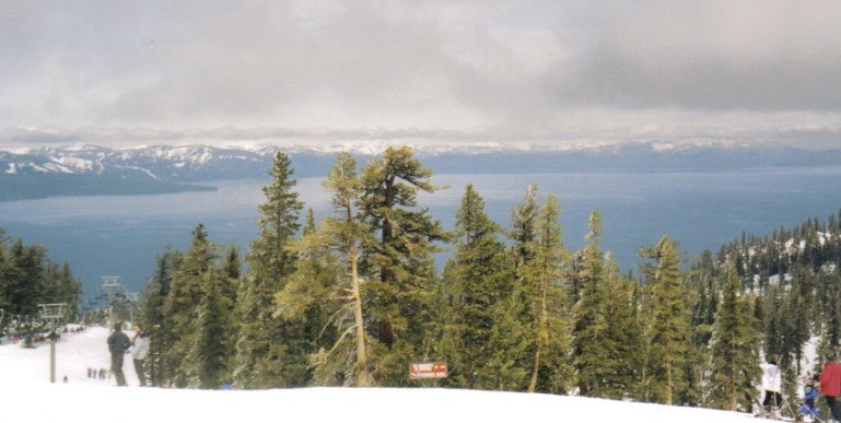- Der Blick während des Skifahrens auf den Lake Tahoe auf der einen und die Wüste in Nevada auf der anderen Seite.