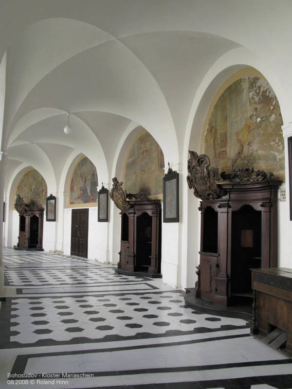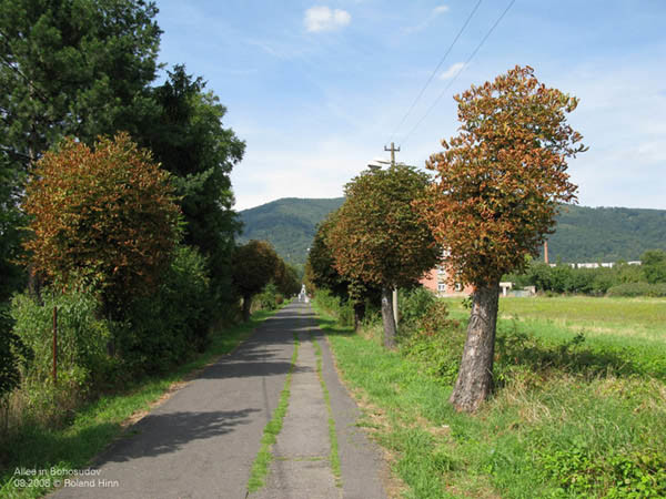Der Spaziergang durch den Ort ist aber ganz nett und nebenbei gibt es noch eine Sehenswürdigkeit zu entdecken. Nach der langen, schnurgeraden Allee (gemütlich ca. 15 Min.) kommt ins Zentrum von Bohosudov, wo sich die barocke Wallfahrtskirche "Mariaschein" befindet.
