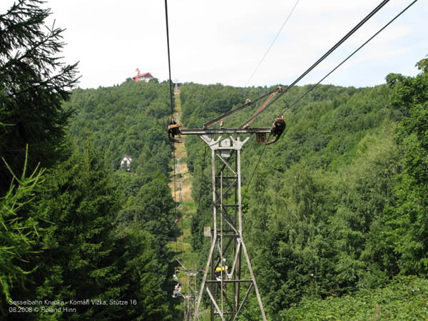 Dieser Lift war einst der längste Sessellift Tschechiens und führt von der Tiefebene zwischen Usti nad Labem (Aussig an der Elbe) und Karlovy Vary (Karlsbad) auf das Hochplateau des Erzgebirges.
