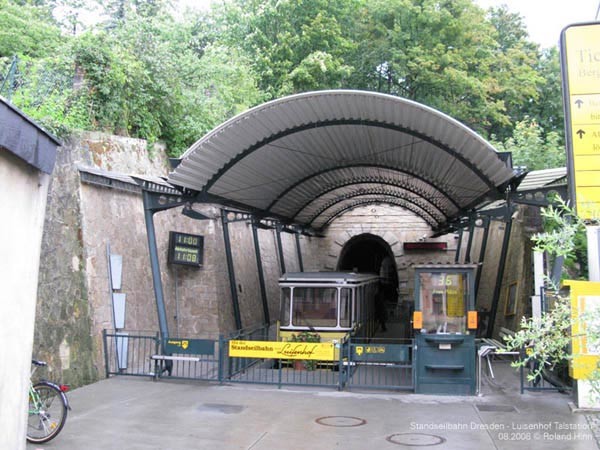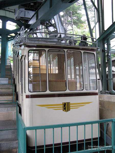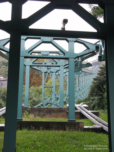 In Dresden gibt es bekanntermaßen zwei Bergbahnen: Die Standseilbahn Luisenhöhe und die Schwebebahn. Aufgrund des miserablen Wetters habe ich von der Bahn auf die Luisenhöhe nur ein Foto bei der Talstation gemacht, die Fahrt mit der Schwebebahn habe ich mir aber nicht entgehen lassen: