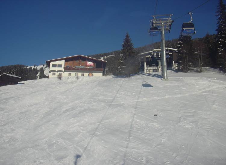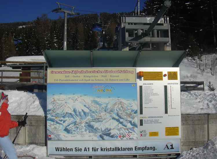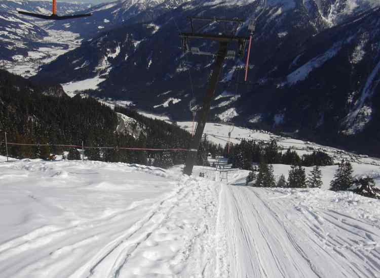 Dann mal schnell zum Vorkogellift- zur Abwechslung, und dann gleich ins Tal runter zur Gerlos-- Iskogelbahn. Die Gondeln sehn ja ulkig aus, aber leider haben die wie die Münchner Buga Bahn solche vergitterten Löcherfenster- wo man keinen Fotoapparat raushalten kann...naja, mal was neues- aber die Bahn iss net schlecht.Die Abfahrt nach Gerlos war sehr schön zu fahrn- erst n bisschen leichte Ziehwege, dann schöne Sonnenhänge zum richtig Gasgeben... So jetzt kommts schlimmste- das Krumbachtal, wenn alle da runterfahrn... und ma net weiß wo man am besten weiterkommt, aber weiter unten bin ich rechts in die freien Felder rausgfahrn, und war dann auch gleich unten. So, jetzt 5 Min. Warten am DSB, und dann bis zum Falschbach raufschaukeln, am 4 SB oben warn die meisten Menschen, 10 MIn. WZ wars schon.Die Königsleiten Bahnen warn dagegen total leer