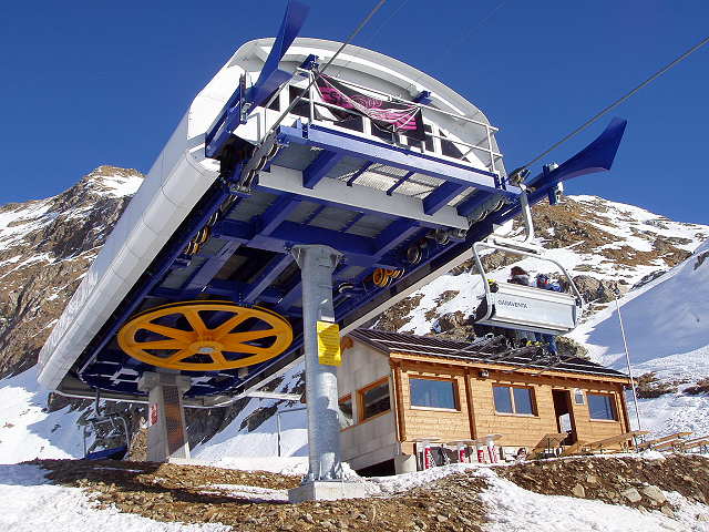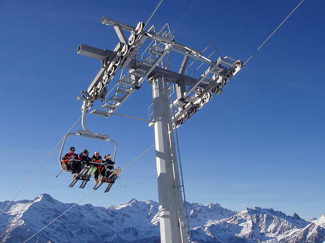 Eine schwarze Piste an der 4KSB die blaue Talabfahrt